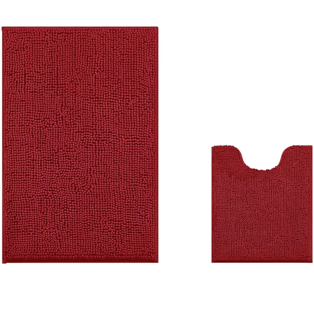 Home Mart Goods Extra Large 2 Piece Set Maroon Red Soft Cozy Plush Chenille Bath Mat Bathroom Rug