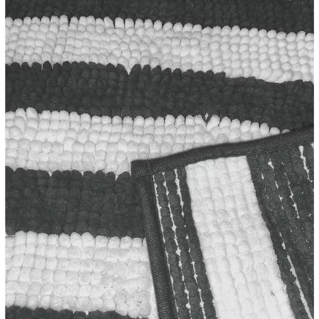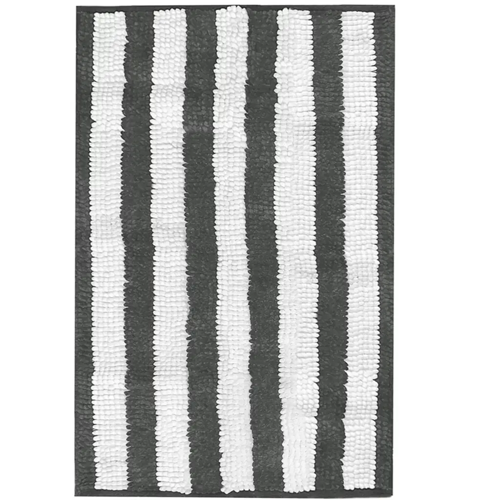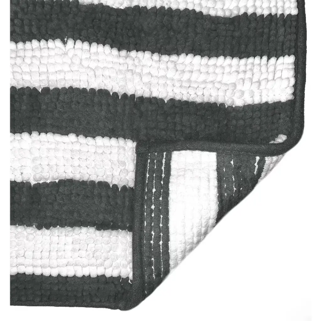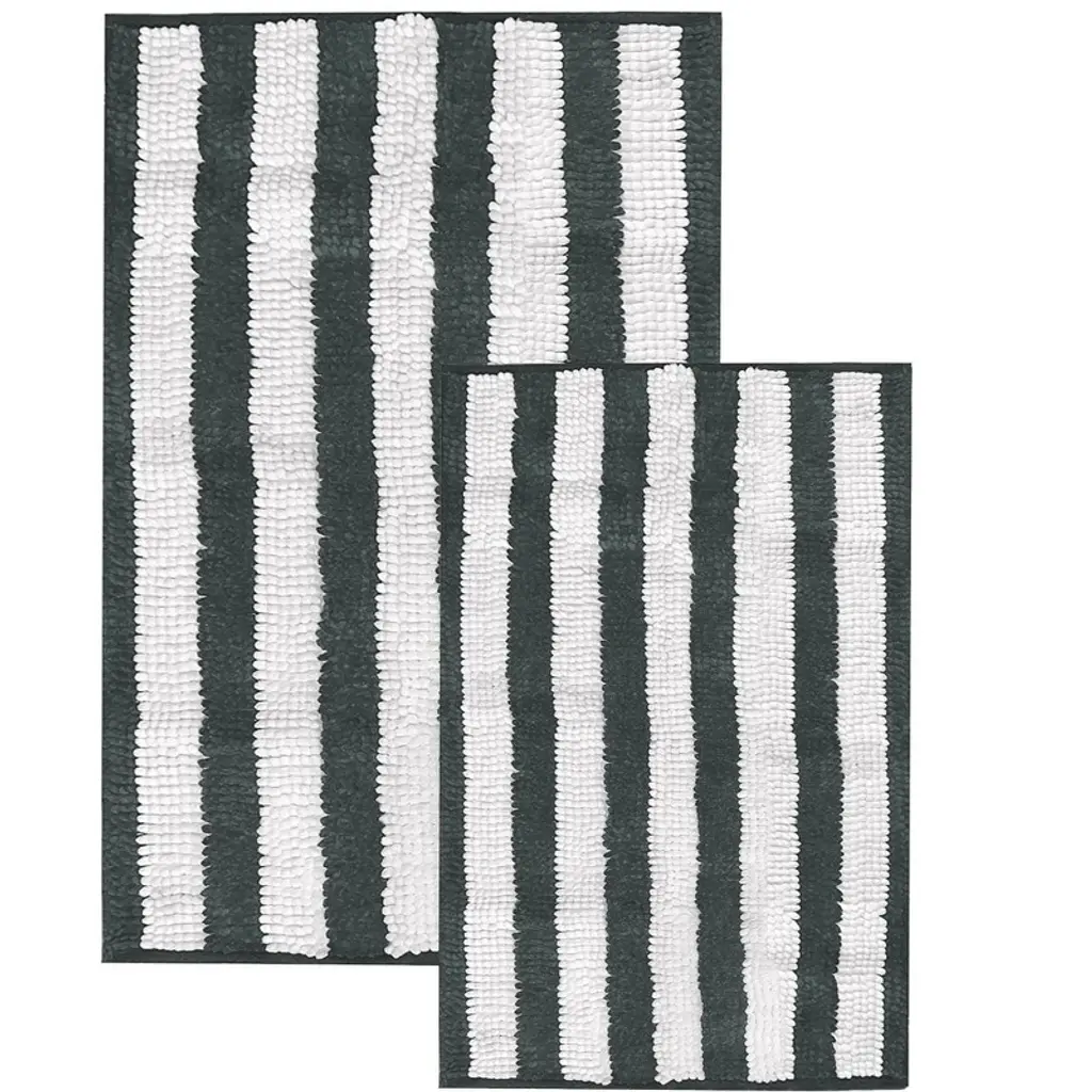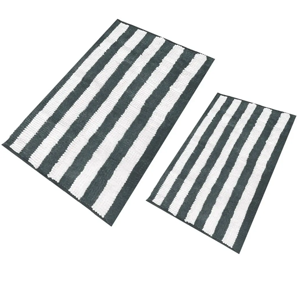 Home Mart Goods Large 2 Piece Set Charcoal Grey White Stripe Soft Cozy Plush Chenille Bath Mat Bathroom Rug