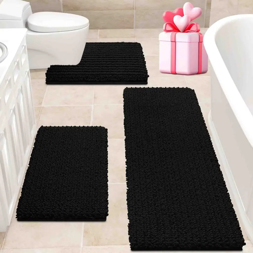 The thick and soft chenille bath rug makes your feet feel the ultimate luxury enjoyment. This bathroom rug is highly absorbent, quickly soaking up moisture and preventing slips and falls. This mat is made of high quality material. Machine washed and dried multiple times, it never fades and loses shape, and it comes in a variety of colors that go well with bathroom décor. SIZE: This set includes 2 bath mats. The first Bath Mat measures 30"x20", the second Bath Mat measures 24"x16". MATERIALS: 100% polyester with a non-slip backing. Fiber that's incredibly soft and durable. Our rugs use thousands of ultra-soft and plush, shaggy chenille fibers for that sensational, cloud-like feeling when you step out of the shower. SOFT & COMFORTABLE: Step into luxury after bath or shower with this soft, quality super soft bath rug set. Super soft and cozy, skin-friendly, relieve pressure and fatigue on your feet. WATER ABSORBENT: Our bath rugs are made with hundreds of individual piles. The thick chenille fabrics absorb water quickly to help your floors from dripping water while you're getting out of the bath. Moisture is trapped in the mat's high pile, allowing the bath rug to dry quickly. MACHINE WASHABLE: These chenille bath mats are easy to clean. Machine wash with cold water and mild detergent (no chlorine or bleach) tumble dry at low speed.