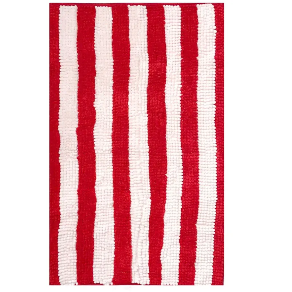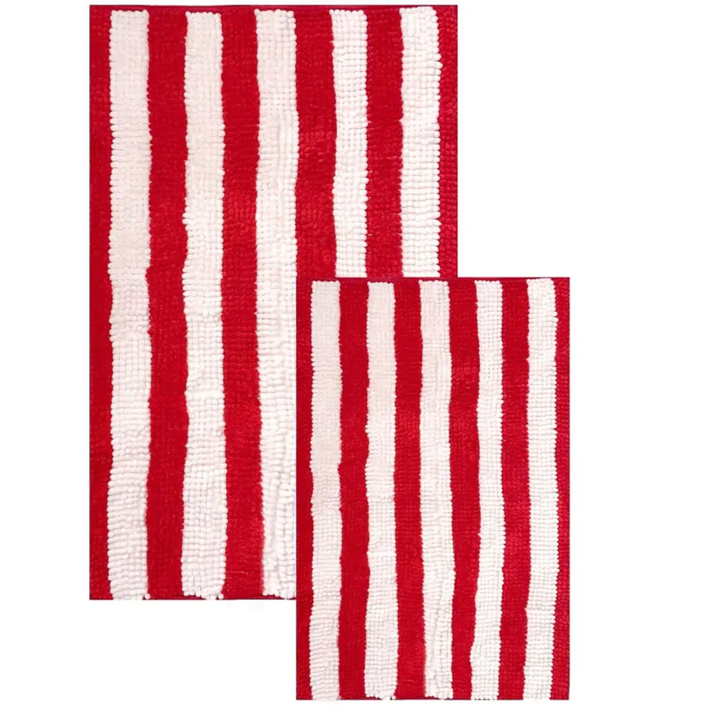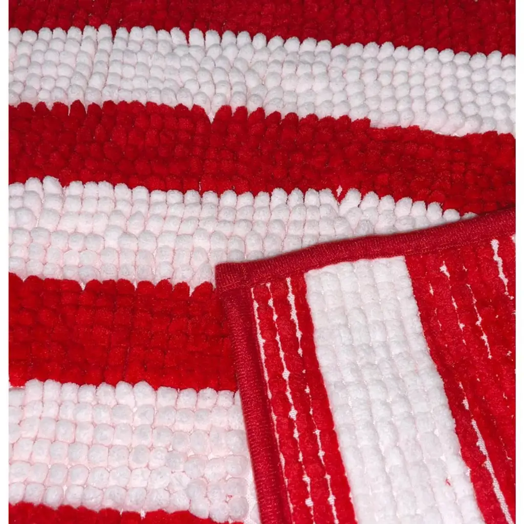 Home Mart Goods Large 2 Piece Set Red White Stripe Soft Cozy Plush Chenille Bath Mat Bathroom Rug