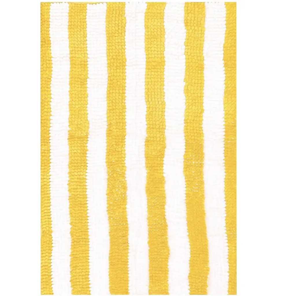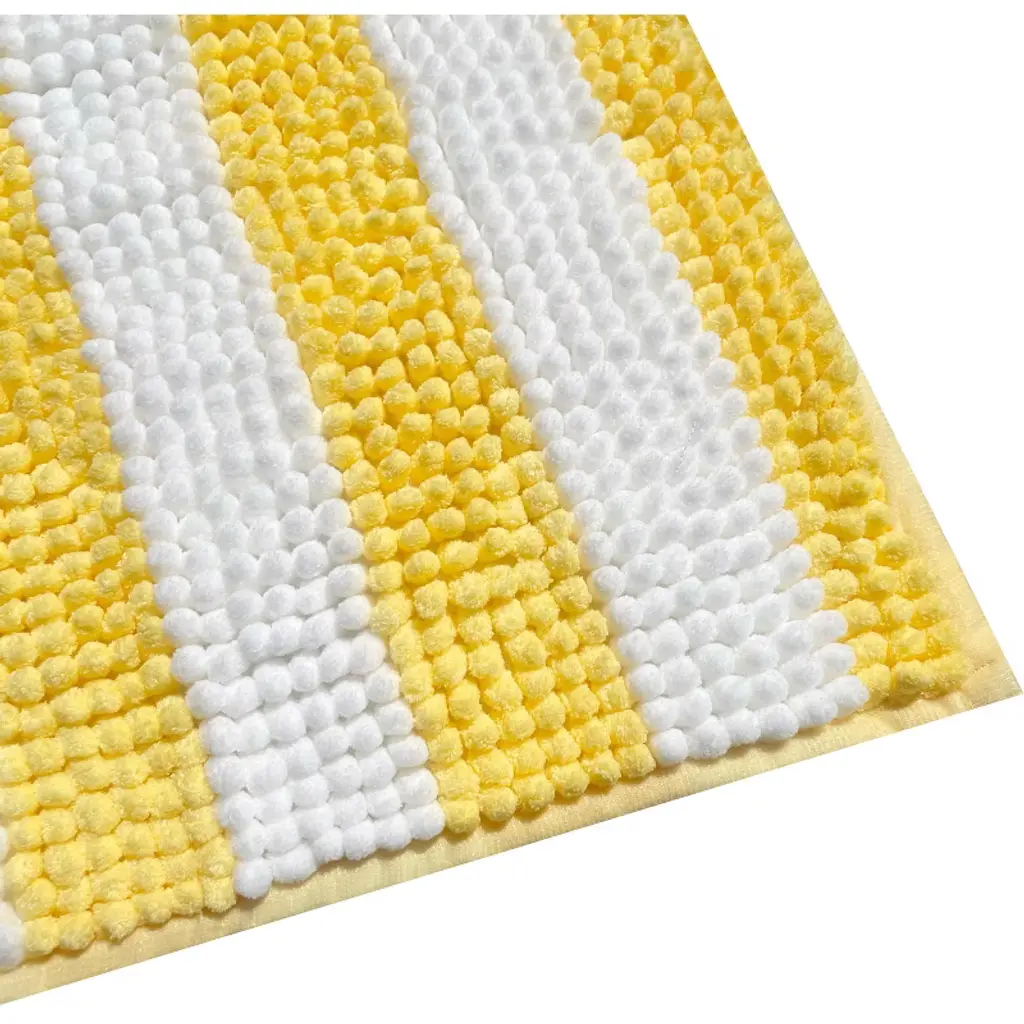 Home Mart Goods Large 2 Piece Set Yellow White Stripe Soft Cozy Plush Chenille Bath Mat Bathroom Rug