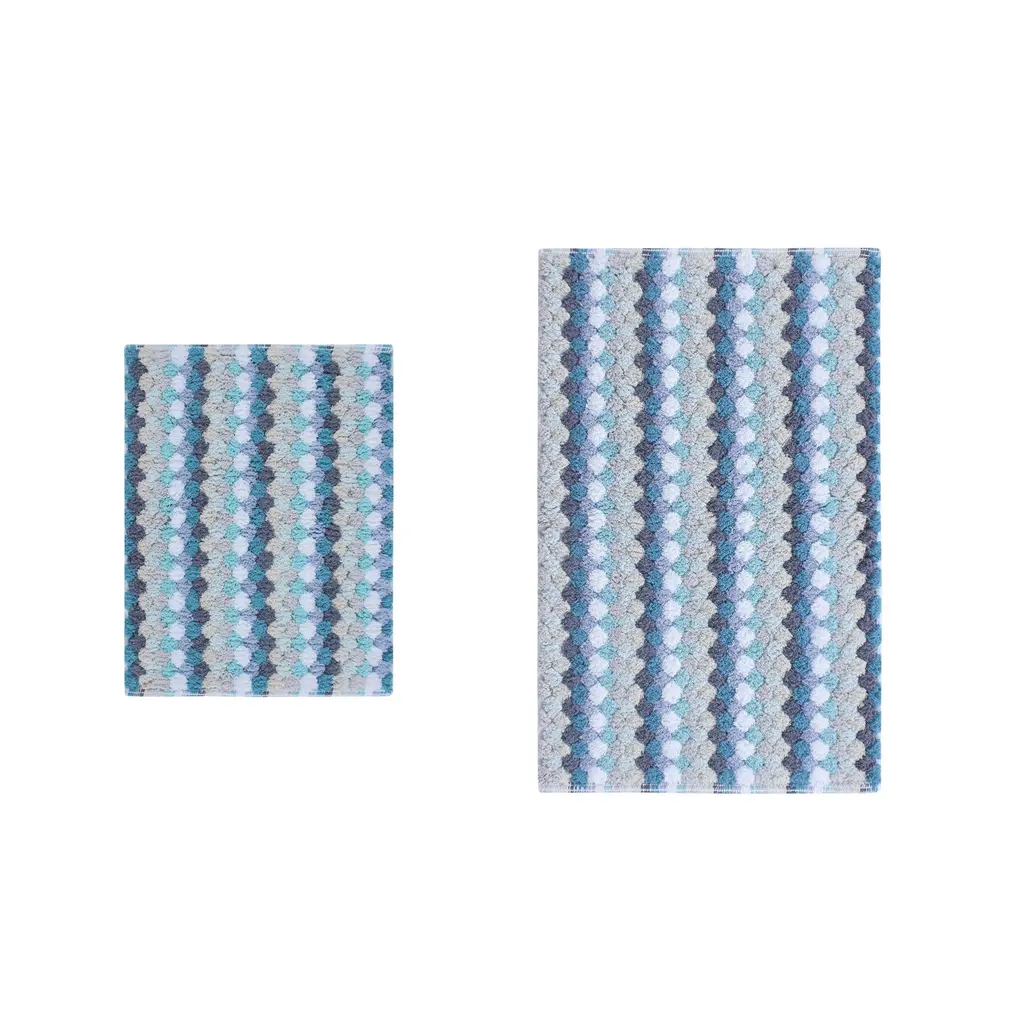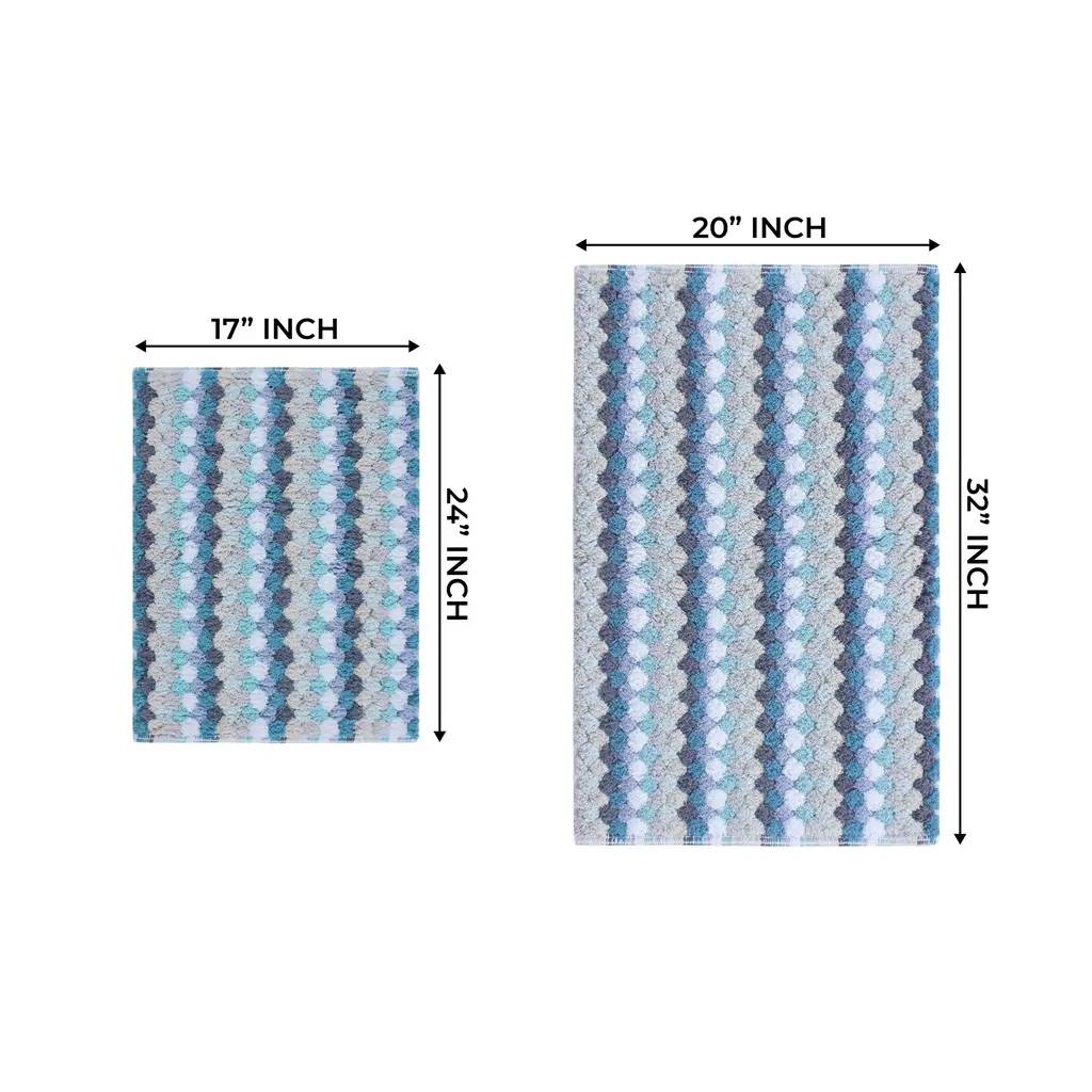 Home Weavers Orion Collection 100% Cotton Bathroom Rug Non Slip & Machine Washable Bath Mat Thick Plush Rugs 2 Pc Set - Blue - 17"x24", 20"x32"