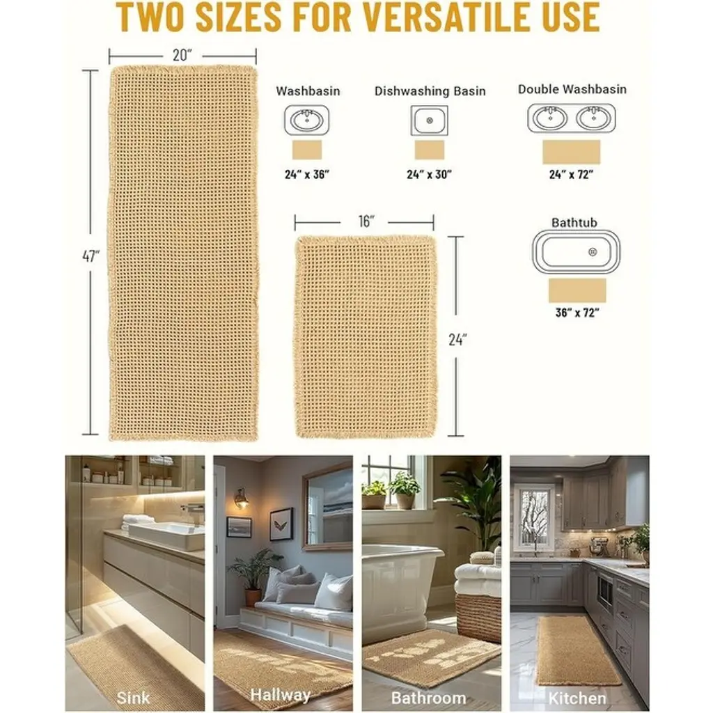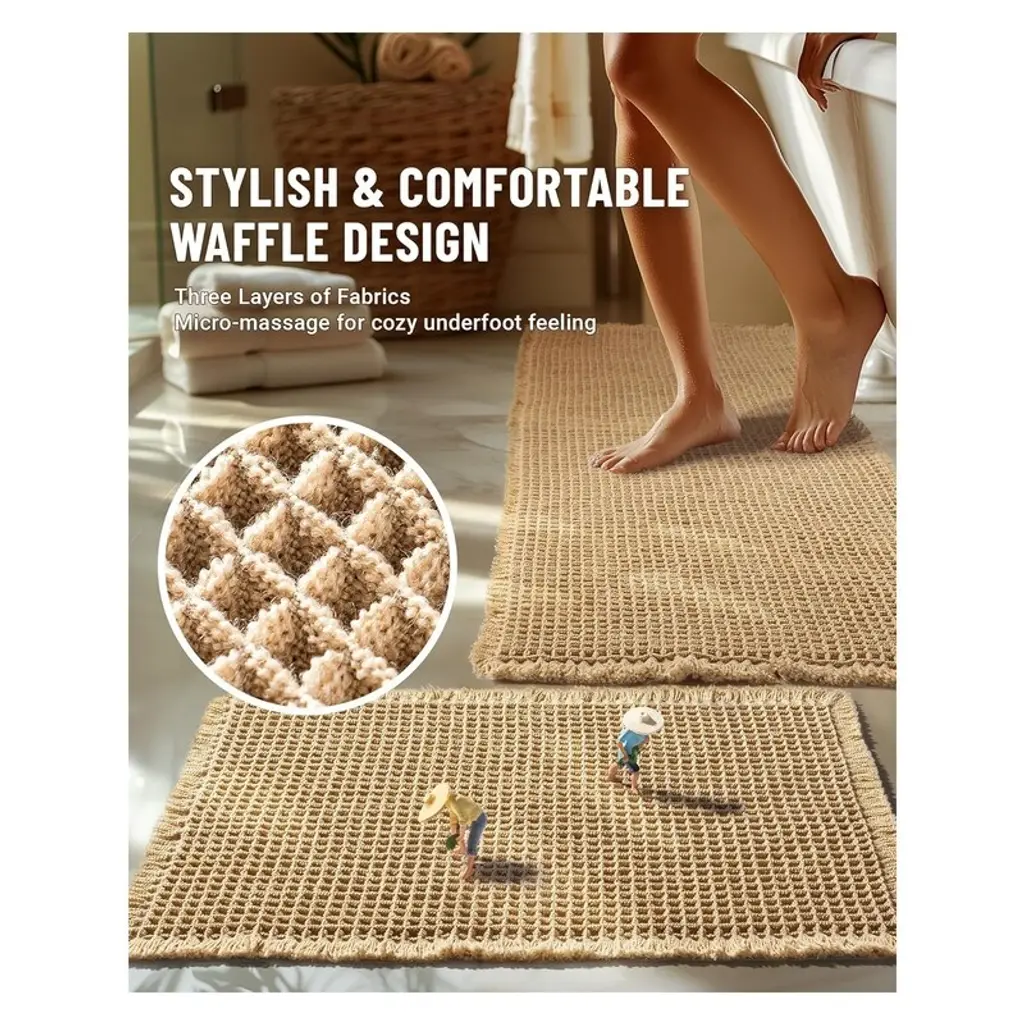 Large Waffle Bath Mat Set, Non Slip Bathroom Mat Set - Brown