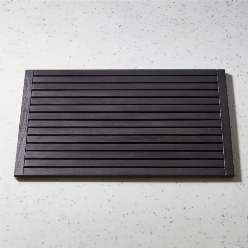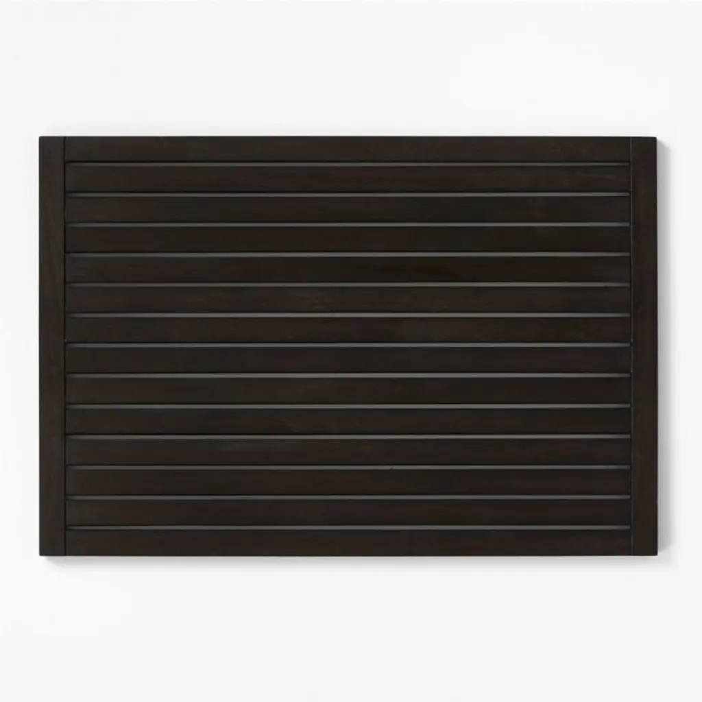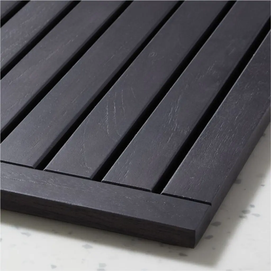 Made of 100% FSC -certified teak wood, slatted teak bath mat brings the spa home. Native to Southeast Asia, teak is water-resistant and thrives in humid climates, making it a natural fit for the bathroom. Black finish adds depth and drama. CB2 exclusive.