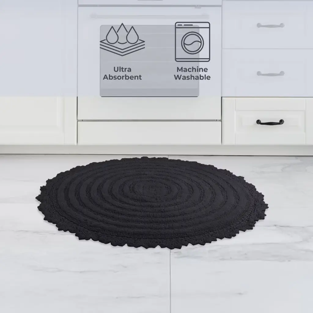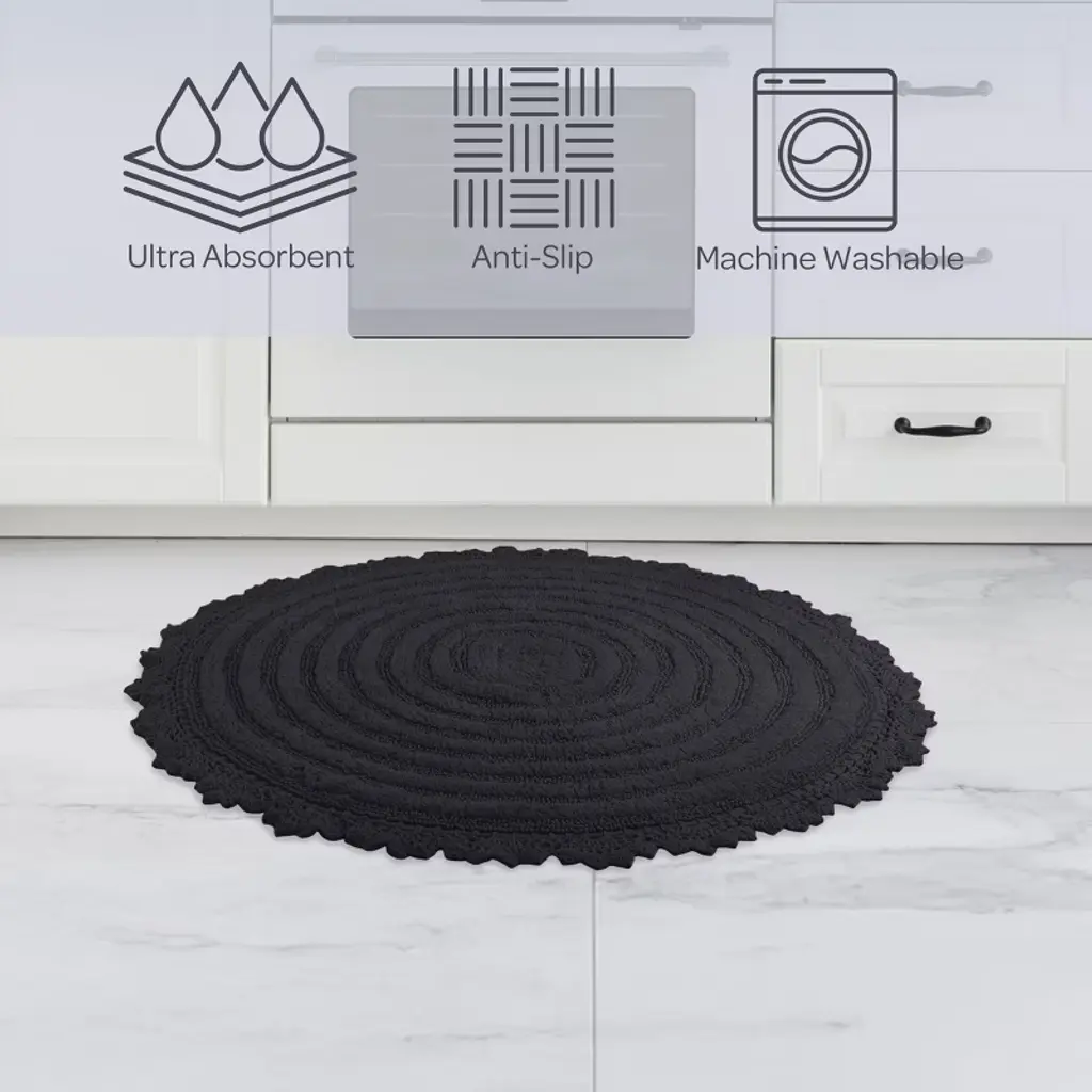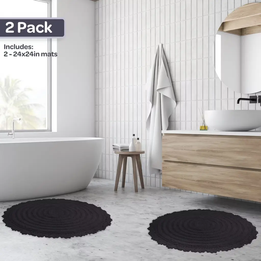 Pamper your feet by stepping out of the shower and onto luxury with the soft Bath Mat Set of 2 by Lavish Home. The bath rug set comes with two 24-inch-diameter cute bathroom rugs made of plush cotton with a 1560 GSM thickness, making them soft to the touch as well as absorbent and durable for lasting use in your bathroom, kitchen, or laundry room. These bath rugs for bathroom floor feature a clear nonslip backing to keep the shower mats from sliding and to keep you and your family safe from injury.