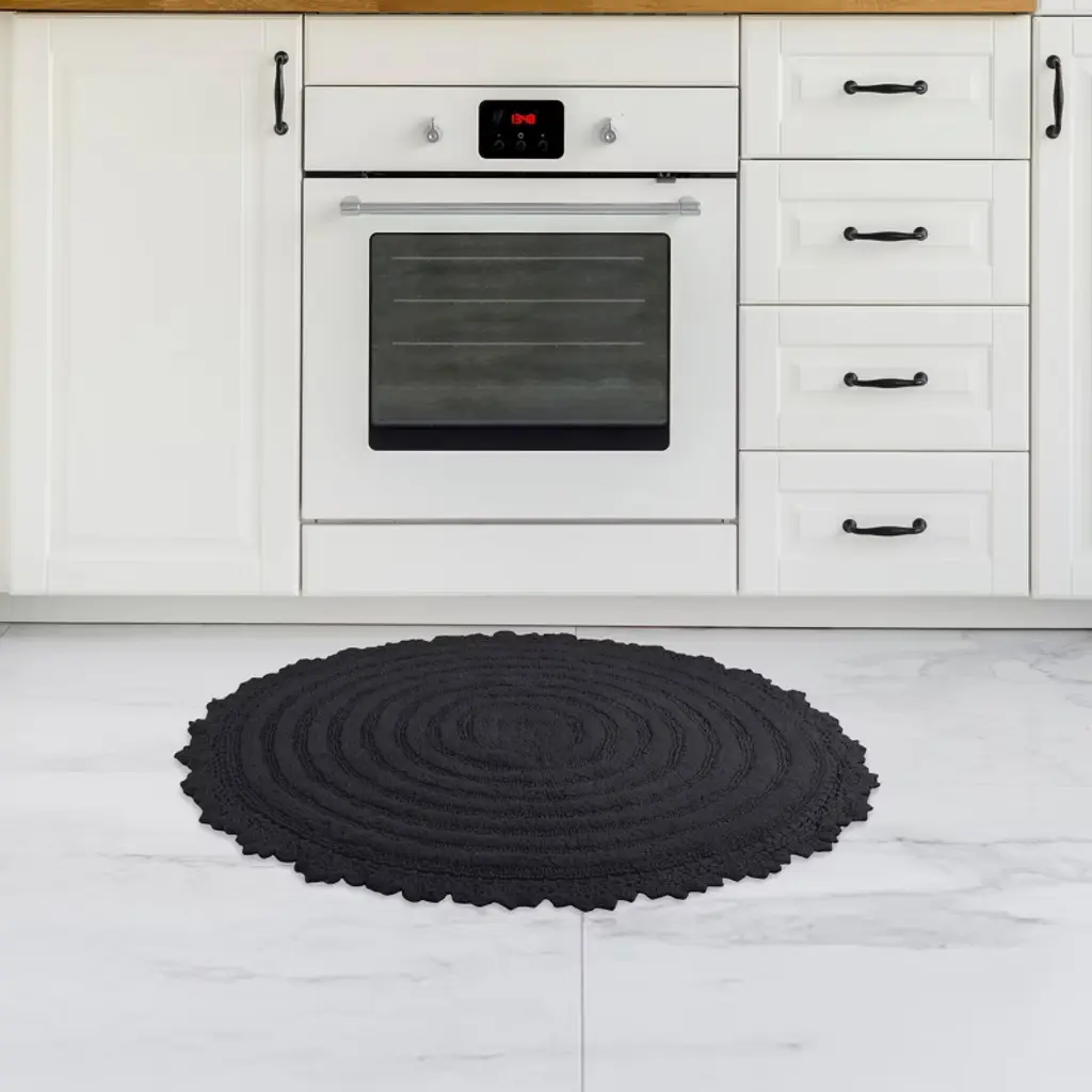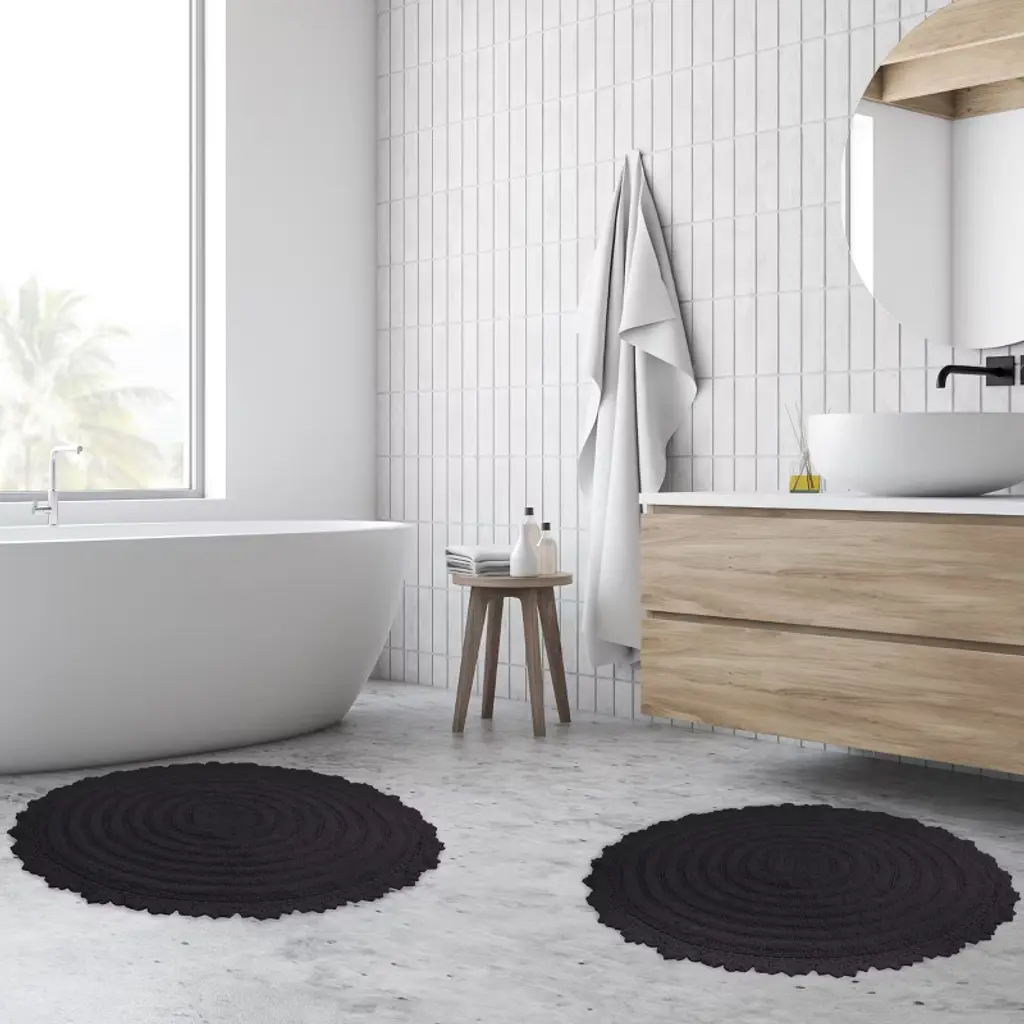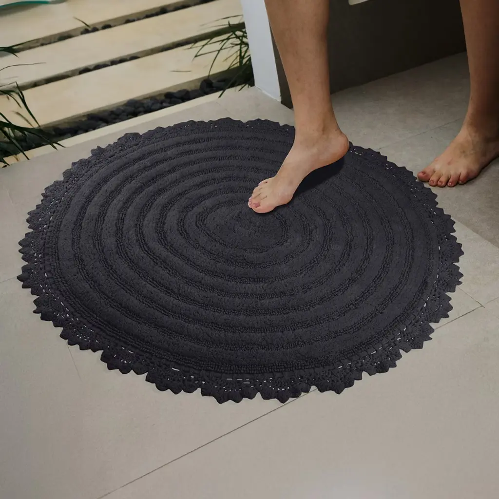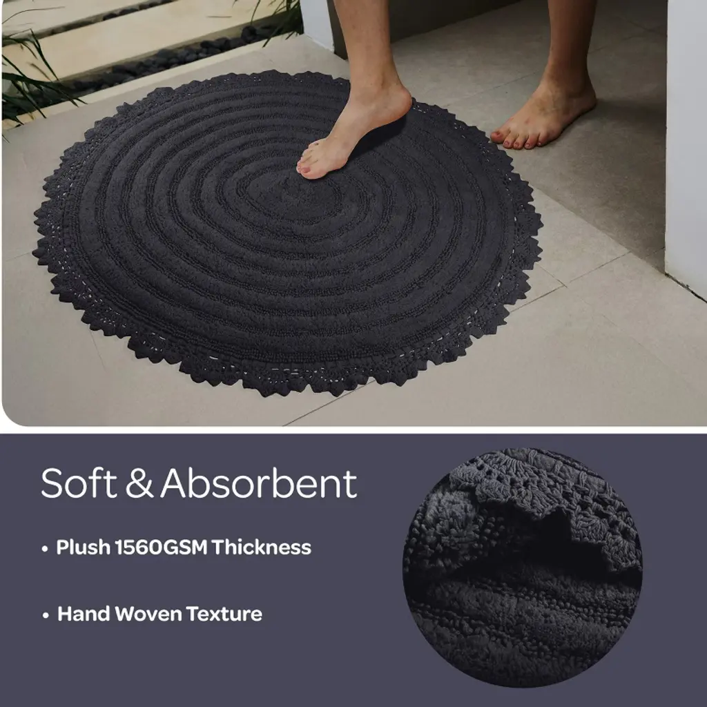 Pamper your feet by stepping out of the shower and onto luxury with the soft Bath Mat Set of 2 by Lavish Home. The bath rug set comes with two 24-inch-diameter cute bathroom rugs made of plush cotton with a 1560 GSM thickness, making them soft to the touch as well as absorbent and durable for lasting use in your bathroom, kitchen, or laundry room. These bath rugs for bathroom floor feature a clear nonslip backing to keep the shower mats from sliding and to keep you and your family safe from injury.