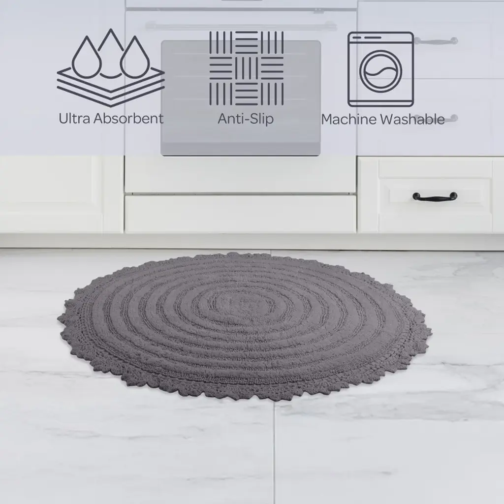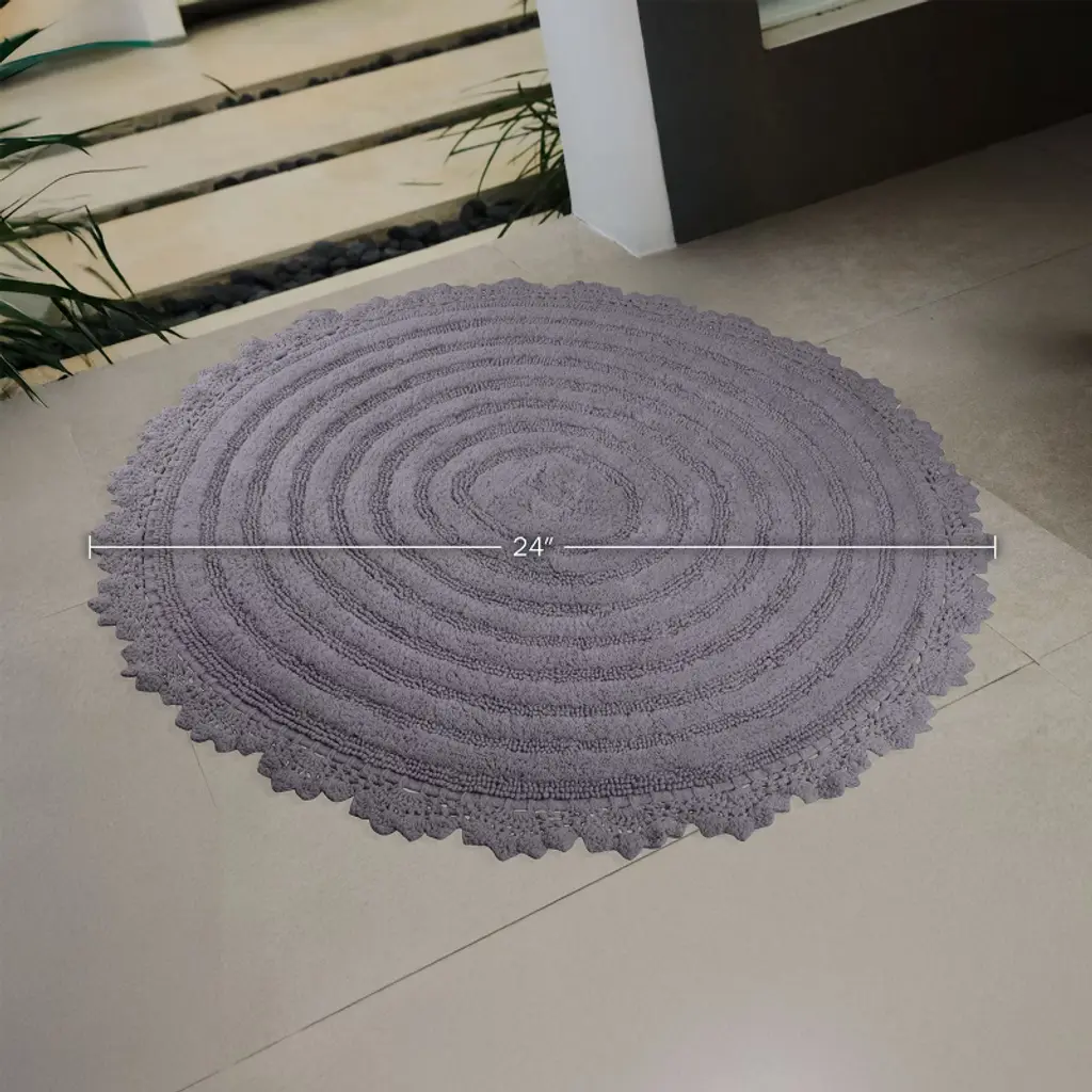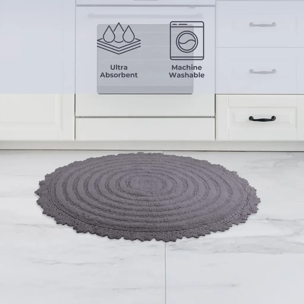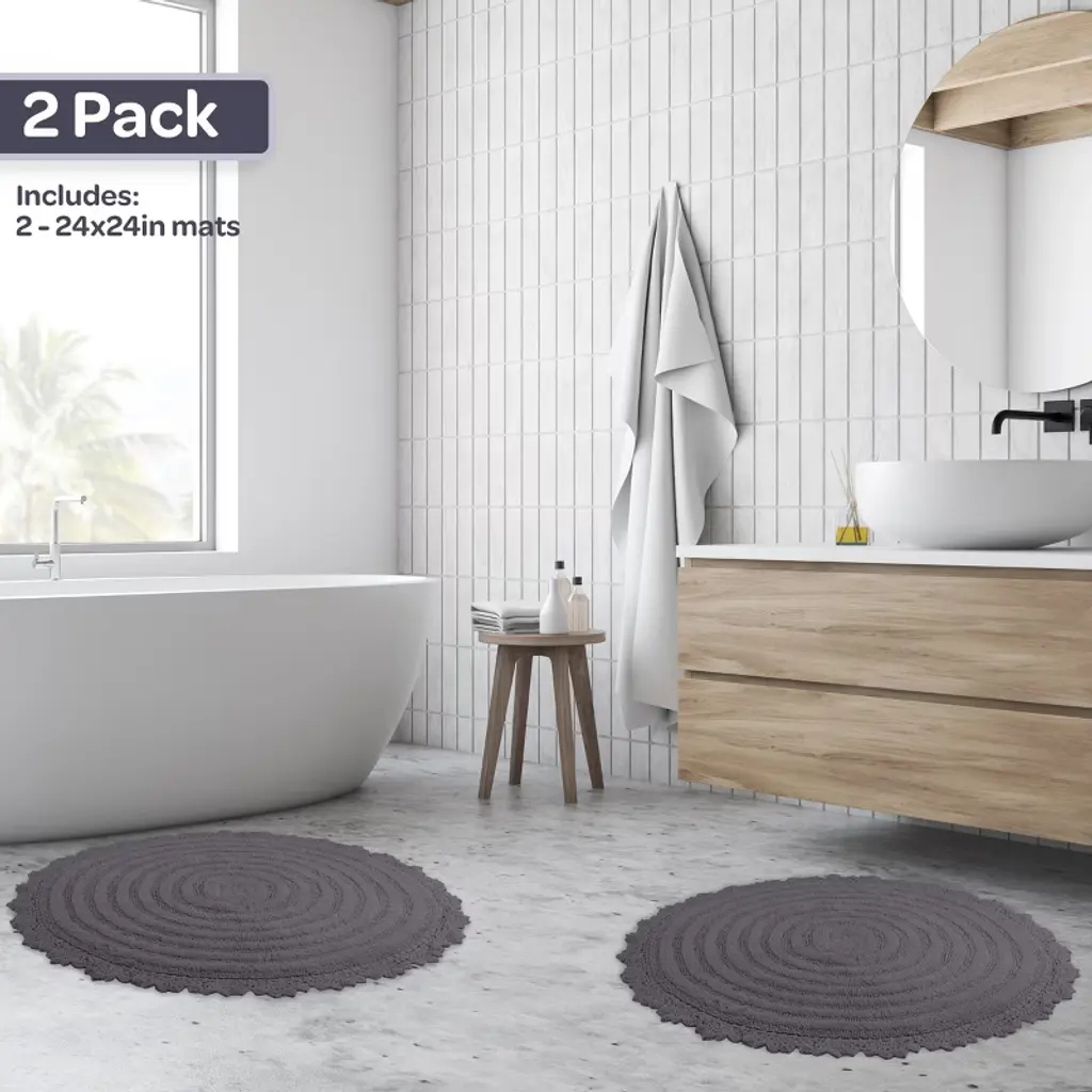Pamper your feet by stepping out of the shower and onto luxury with the soft Bath Mat Set of 2 by Lavish Home. The bath rug set comes with two 24-inch-diameter cute bathroom rugs made of plush cotton with a 1560 GSM thickness, making them soft to the touch as well as absorbent and durable for lasting use in your bathroom, kitchen, or laundry room. These bath rugs for bathroom floor feature a clear nonslip backing to keep the shower mats from sliding and to keep you and your family safe from injury.