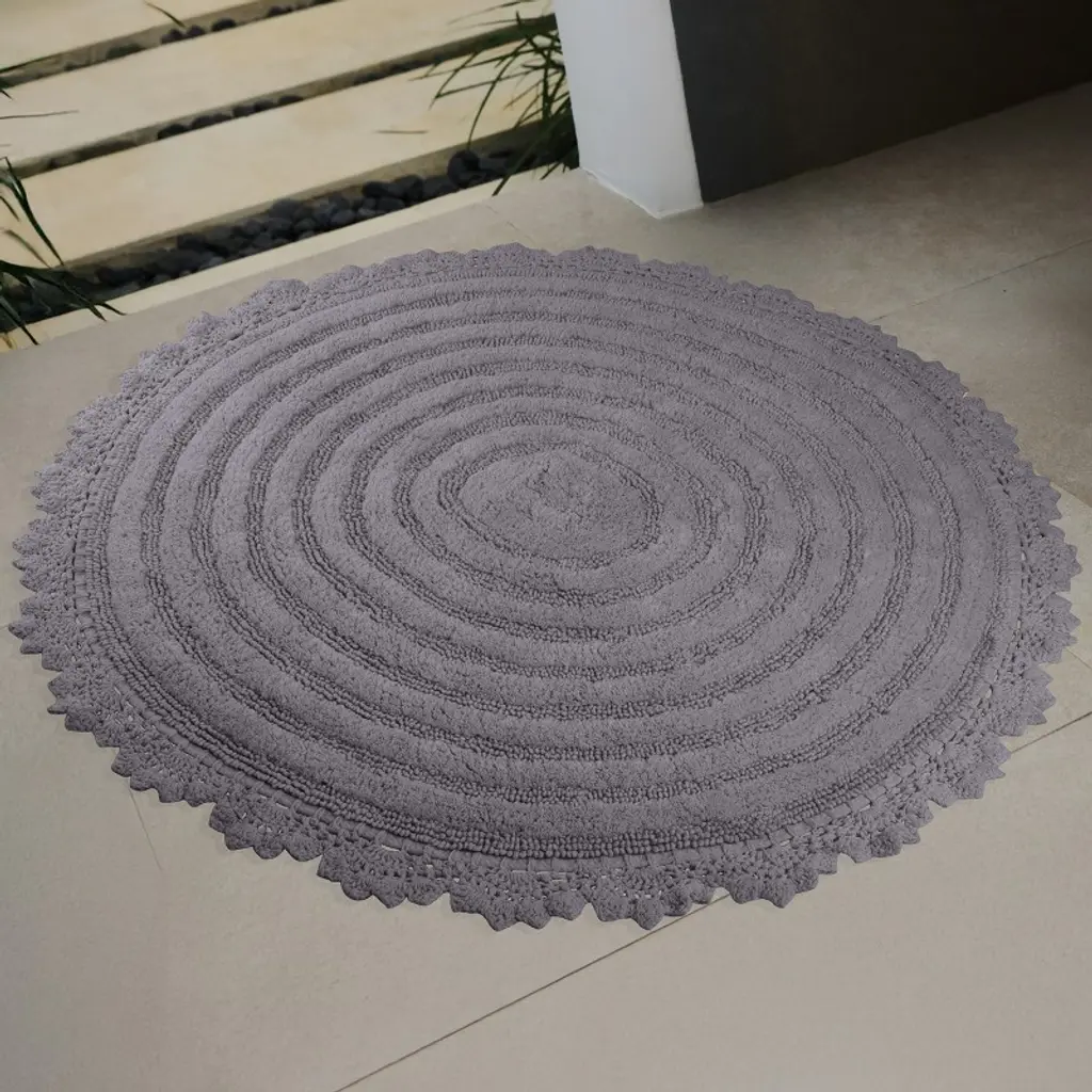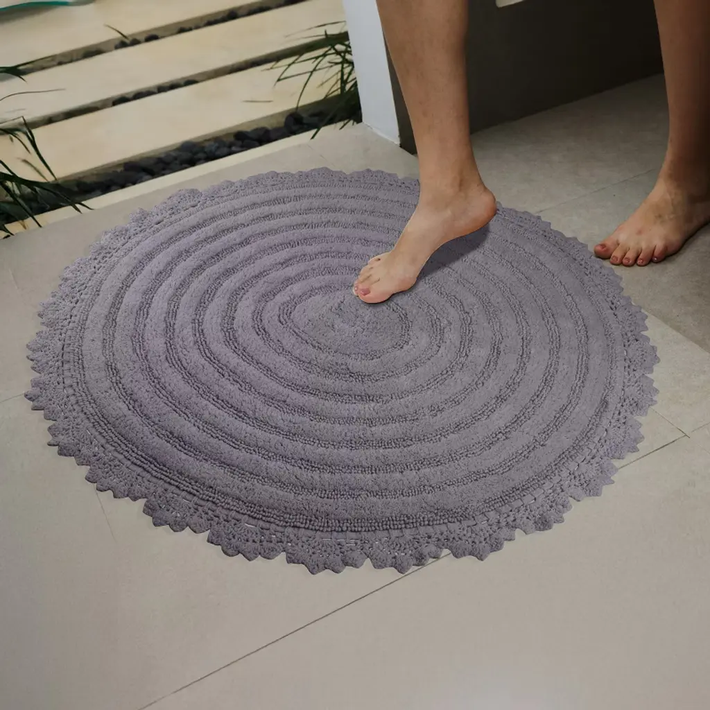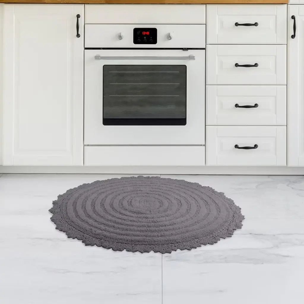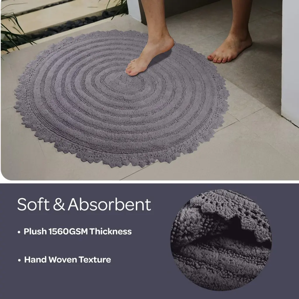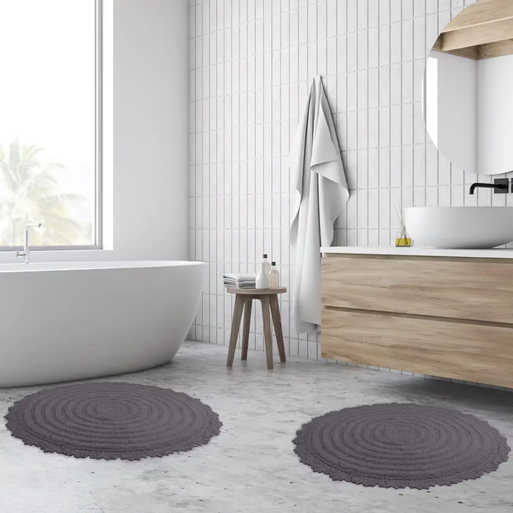 Pamper your feet by stepping out of the shower and onto luxury with the soft Bath Mat Set of 2 by Lavish Home. The bath rug set comes with two 24-inch-diameter cute bathroom rugs made of plush cotton with a 1560 GSM thickness, making them soft to the touch as well as absorbent and durable for lasting use in your bathroom, kitchen, or laundry room. These bath rugs for bathroom floor feature a clear nonslip backing to keep the shower mats from sliding and to keep you and your family safe from injury.
