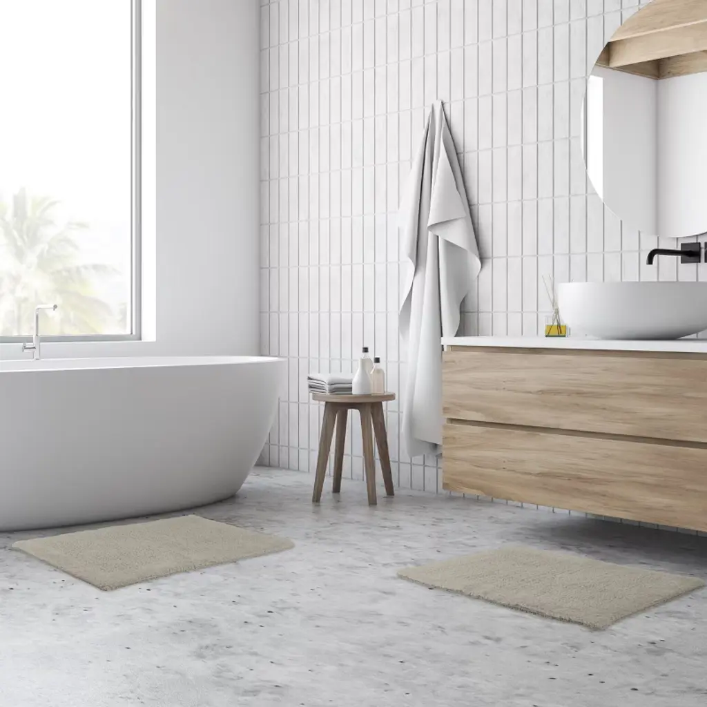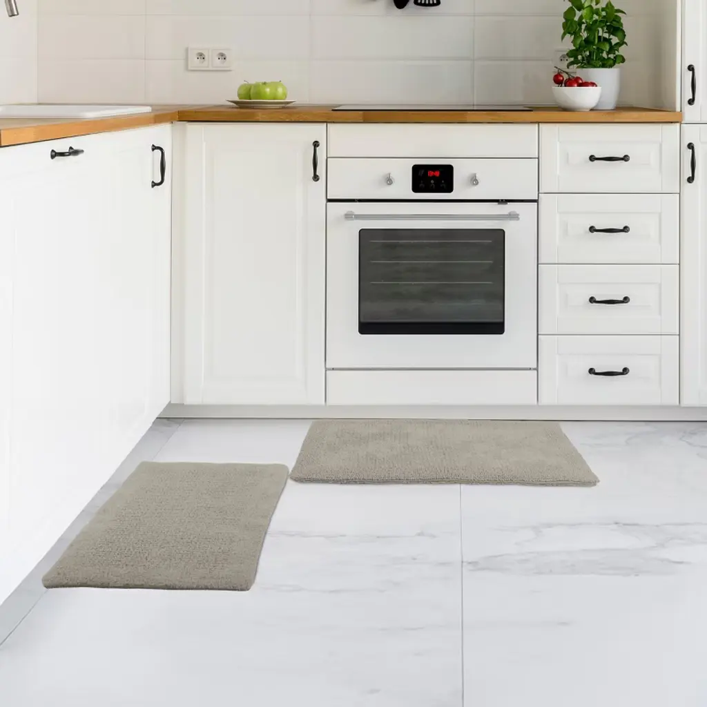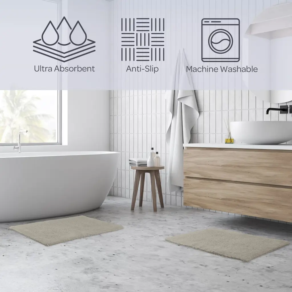 Pamper your feet by stepping out of the shower and onto the Bath Mats for Bathroom Floor Set of 2 by Lavish Home. The bathroom rugs set comes with one 17x24-inch small bathroom rug and one 21x34-inch long bath mat made of plush cotton with a 2500GSM thickness, making them soft to the touch as well as extremely absorbent and durable for lasting use in your bathroom, kitchen, or laundry room. Each cotton bath mat features a reversible design for twice the usage and is conveniently machine washable as needed for an easy to clean addition to your bathroom accessories.
