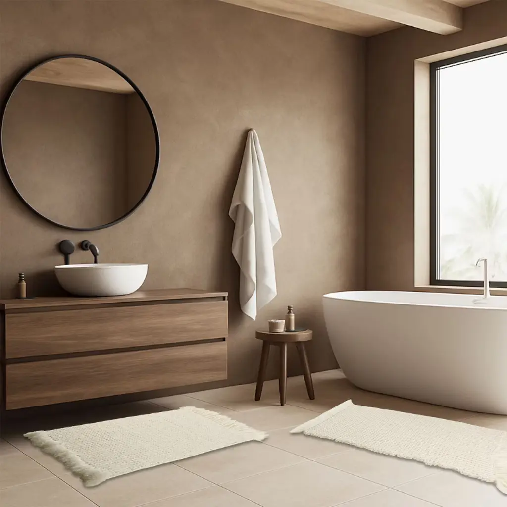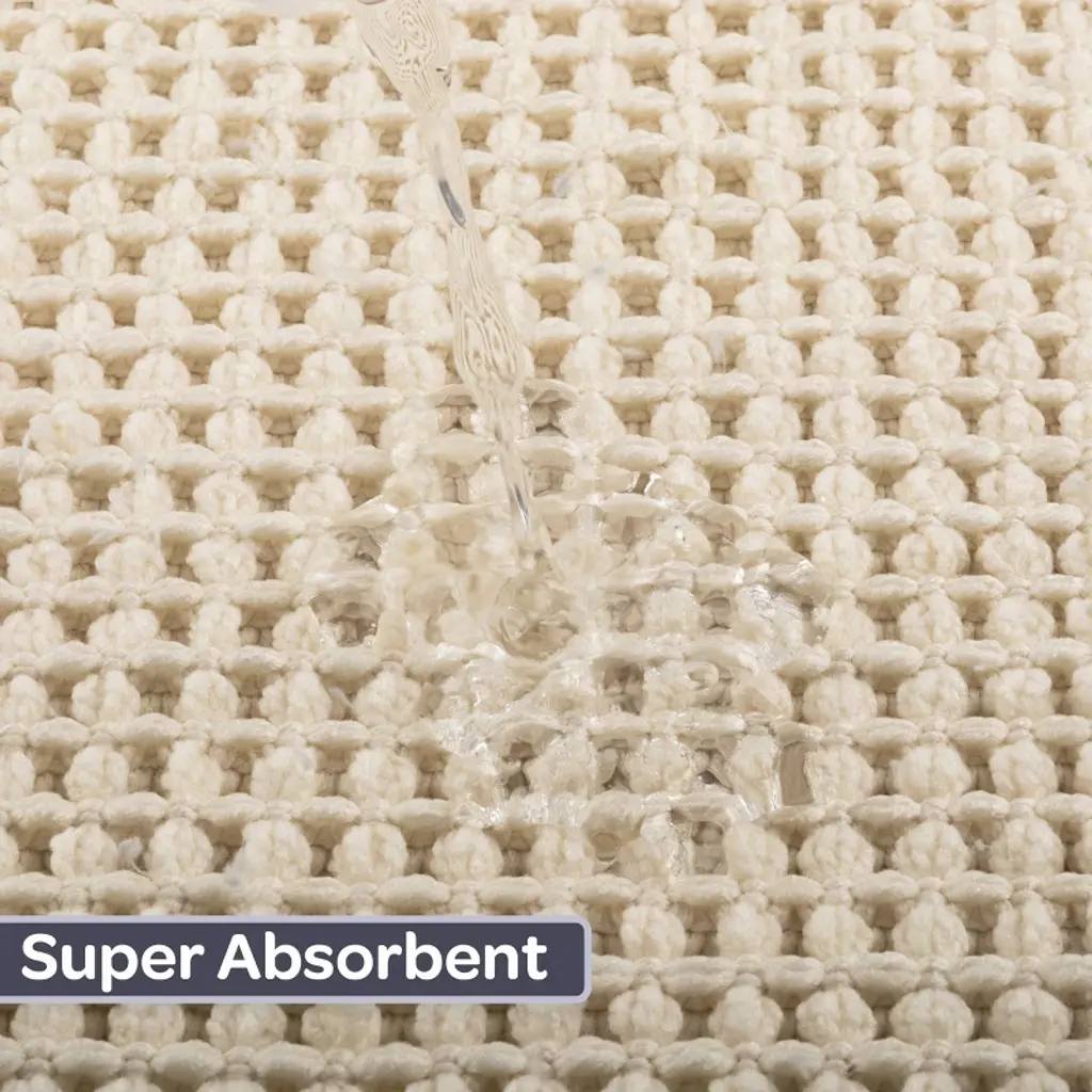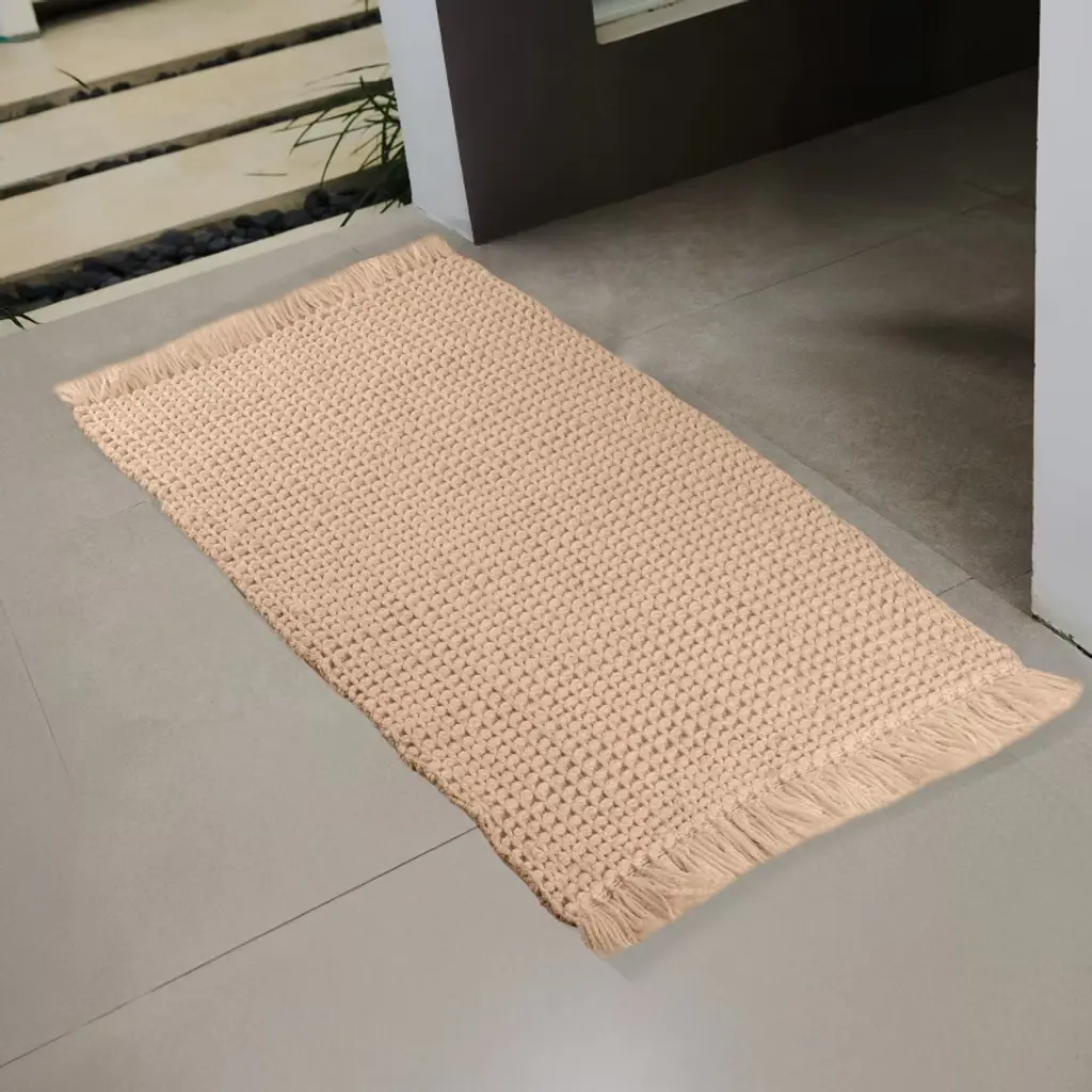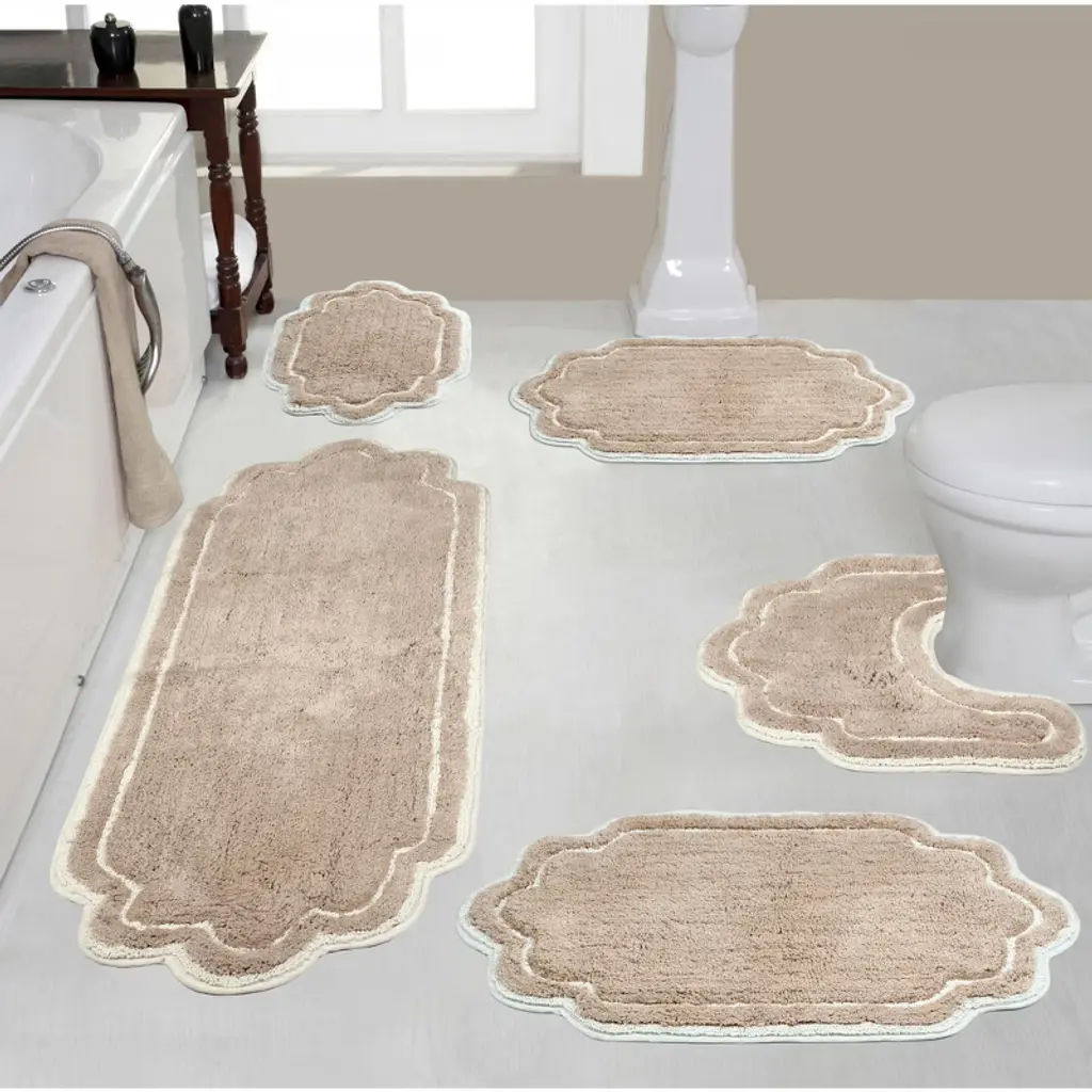 Pamper your feet by stepping out of the shower and onto luxury with the soft Bathroom Mats 2 Piece by Lavish Home. The bathroom rugs set comes with one 17x24-inch bath rug and one 21x34-inch bathmat made of plush cotton with a 1000 GSM thickness, making it soft to the touch as well as absorbent and durable for lasting use in your bathroom, kitchen, or laundry room. Each shower mat has been hand woven on a handloom in India for a truly unique and one-of-a-kind piece of modern bathroom decor.