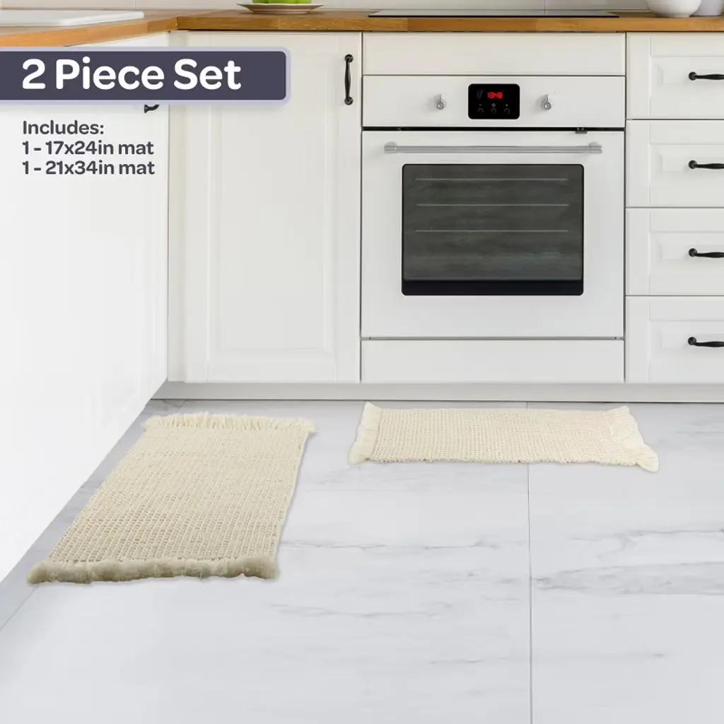 Lavish Home 2Pc Waffle Bath Mat Set, Ivory
