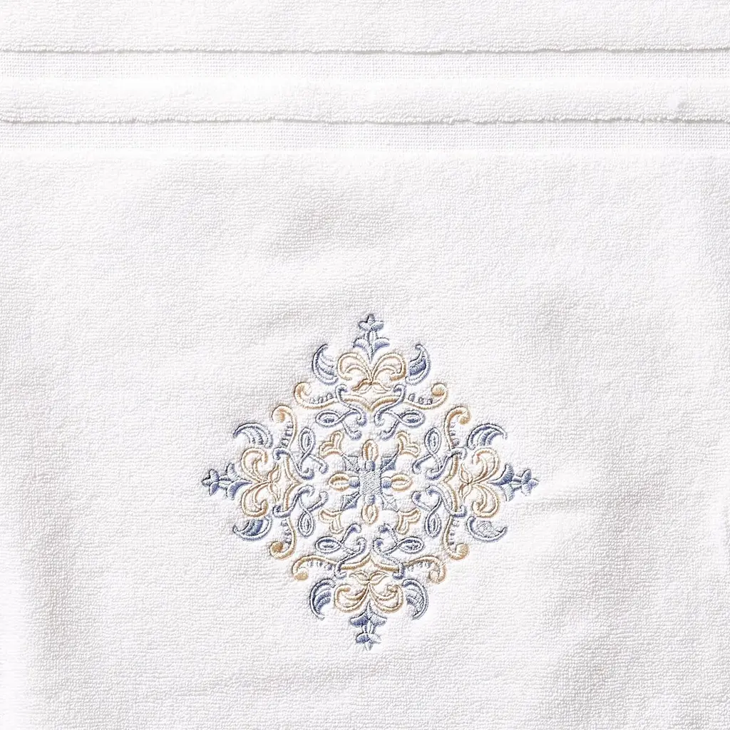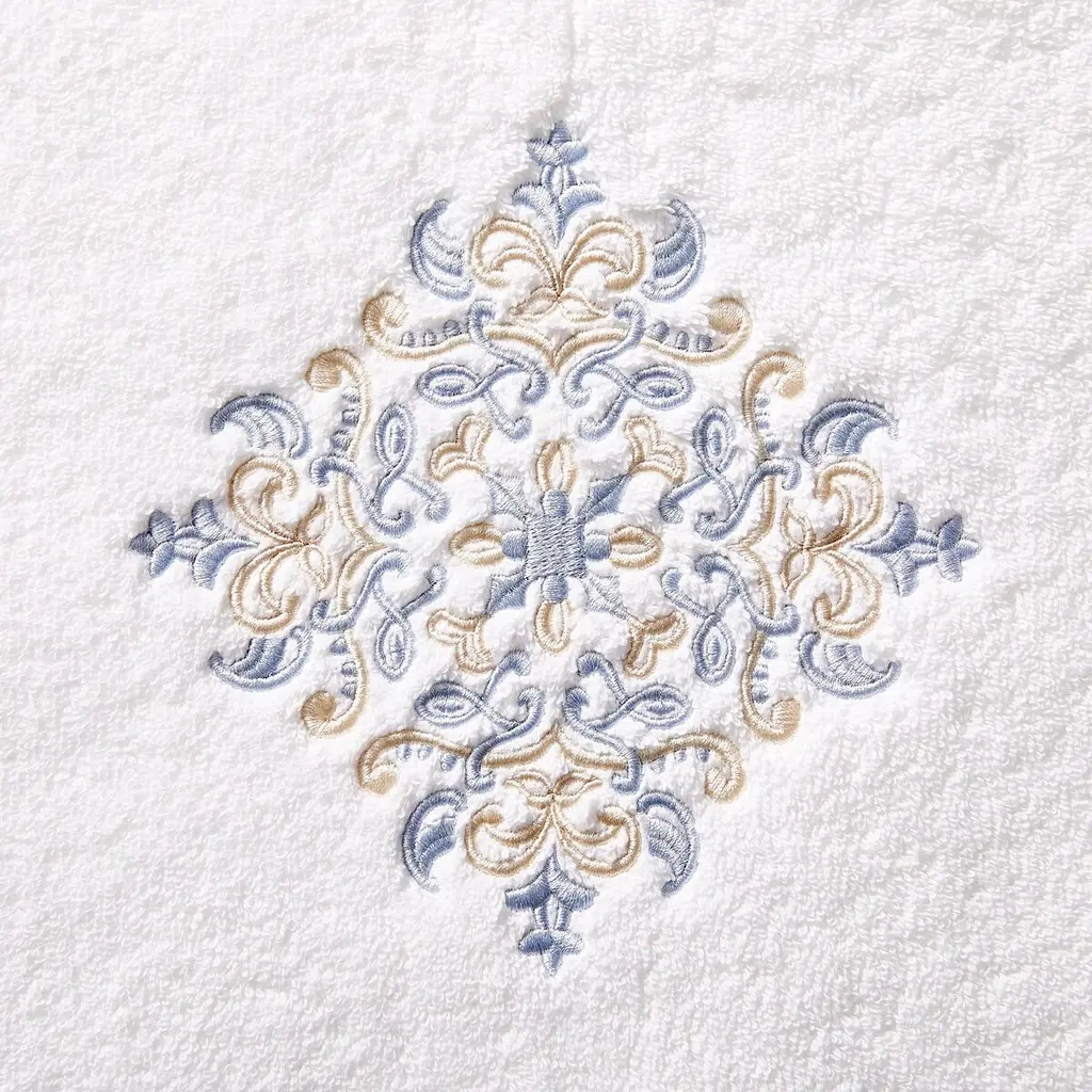 A treat for your feet every time you step from the bath, this super-soft and absorbent mat features a textured double border and a two-tone embroidered medallion design.