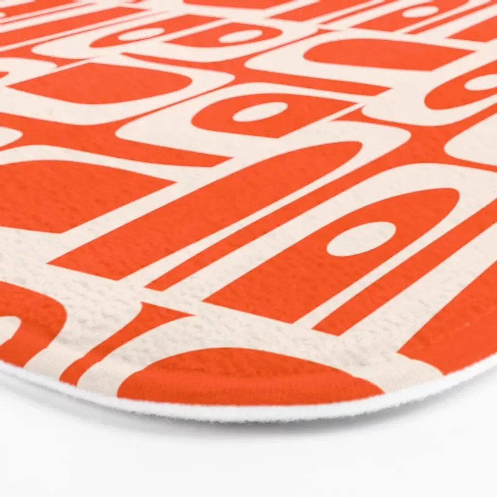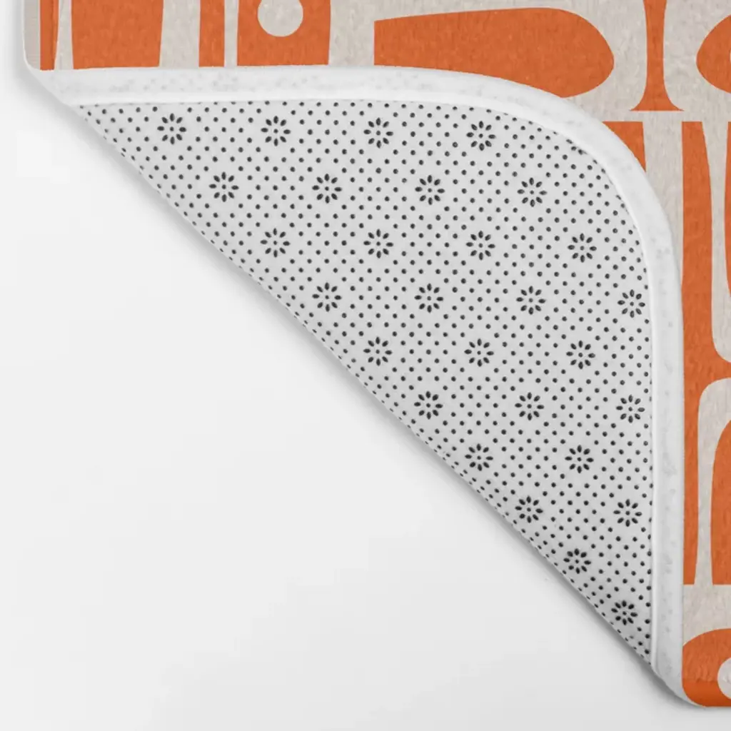 Mid Century Modern Piquet Abstract Multi Pattern In 70s Tangerine Orange And Cream Beige Bath Mat