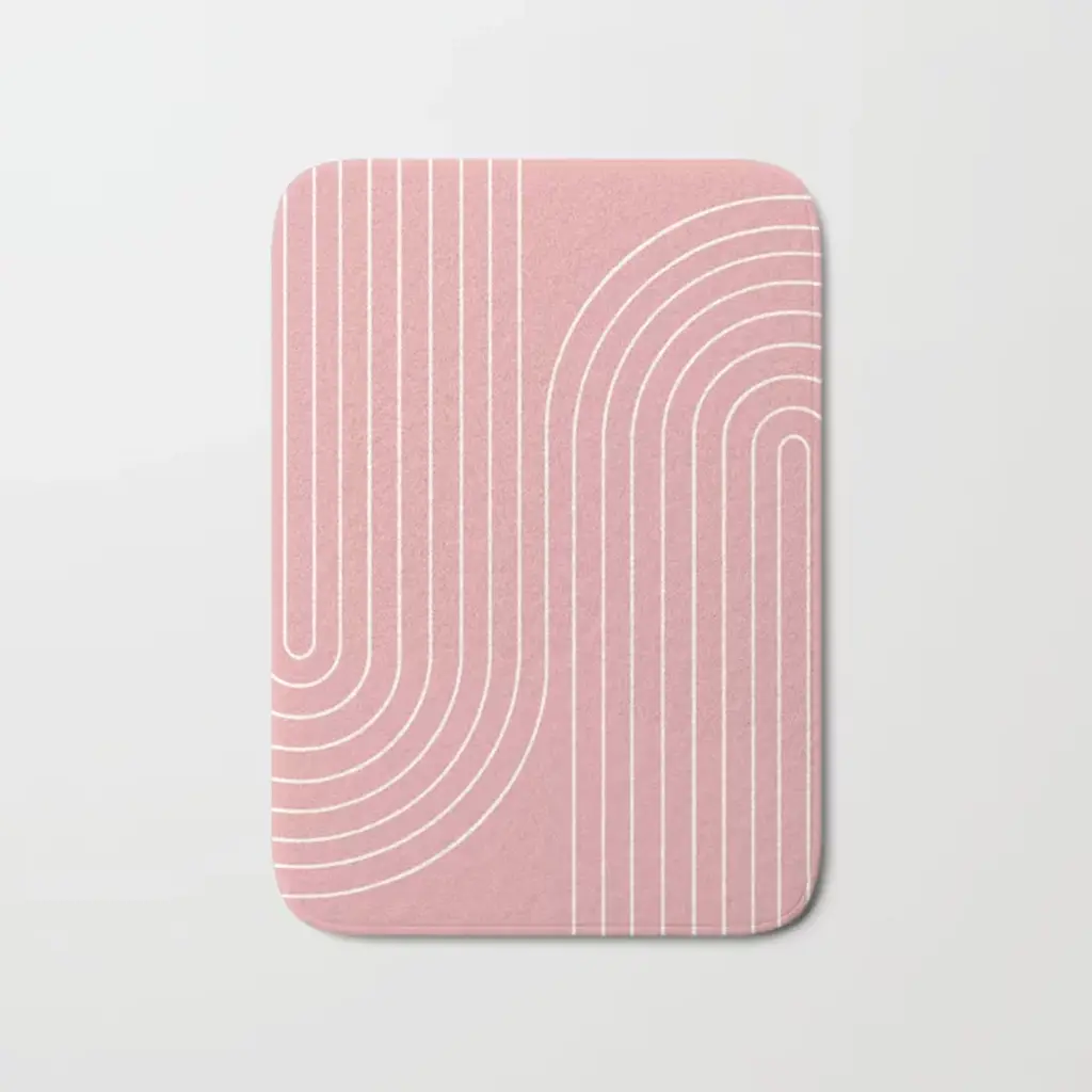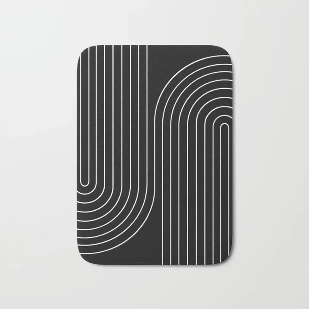 Minimal Line Curvature V Natural Neutral Mid Century Modern Arch Abstract Bath Mat