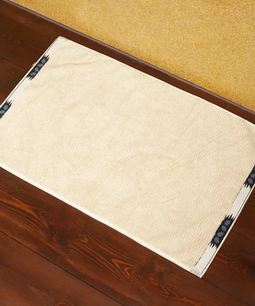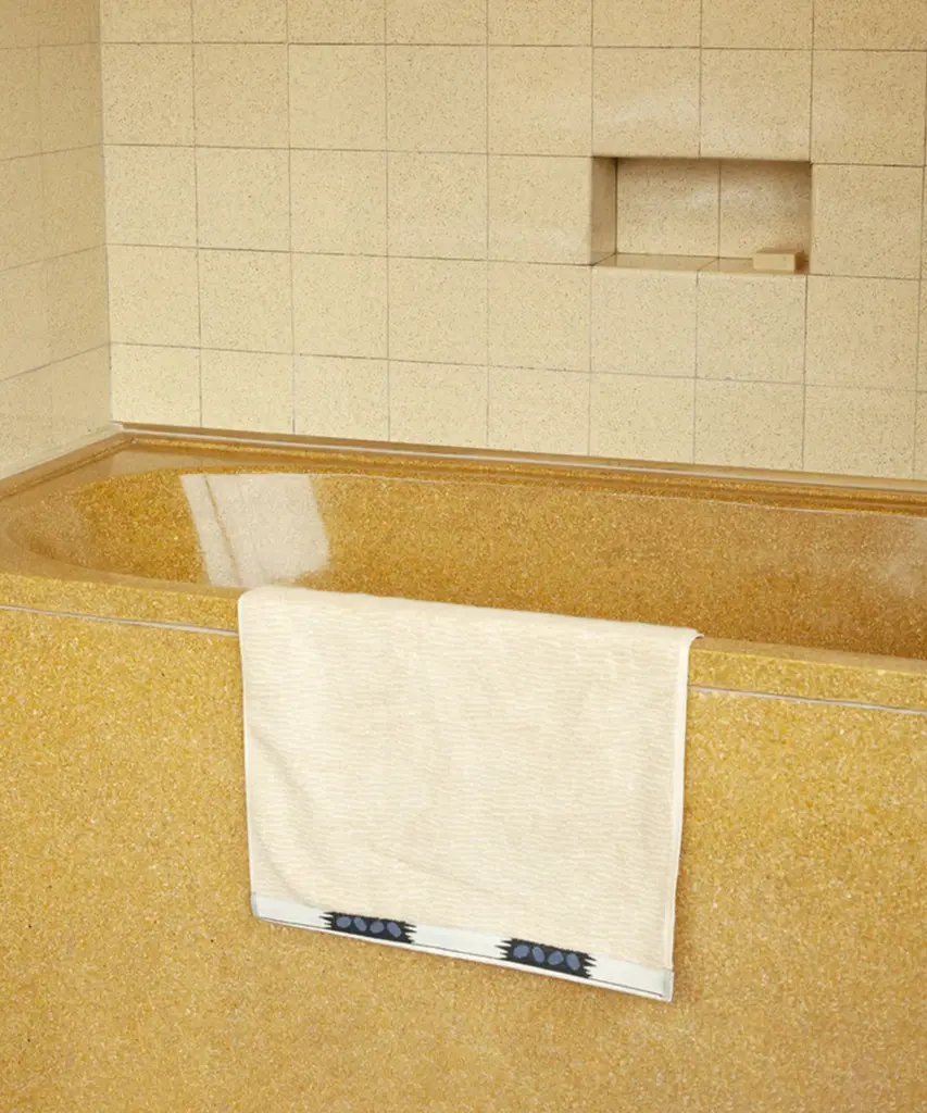 An assemblage inspired by late 19th-century French trim motifs, this bath mat delights with expressive refinement. Bold cotton trim frames a two-tone melange with a lush visual texture. The generous double yarn is gratifyingly durable and maximizes on under the feet comfort. The mat absorbs and dries with ease thanks to the sumptuous surface area that forms an exceptionally even pile. Designed by the Amsterdam Based homeware brand, Autumn Sonata.