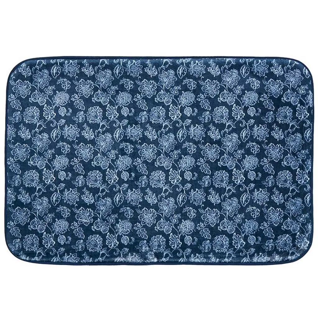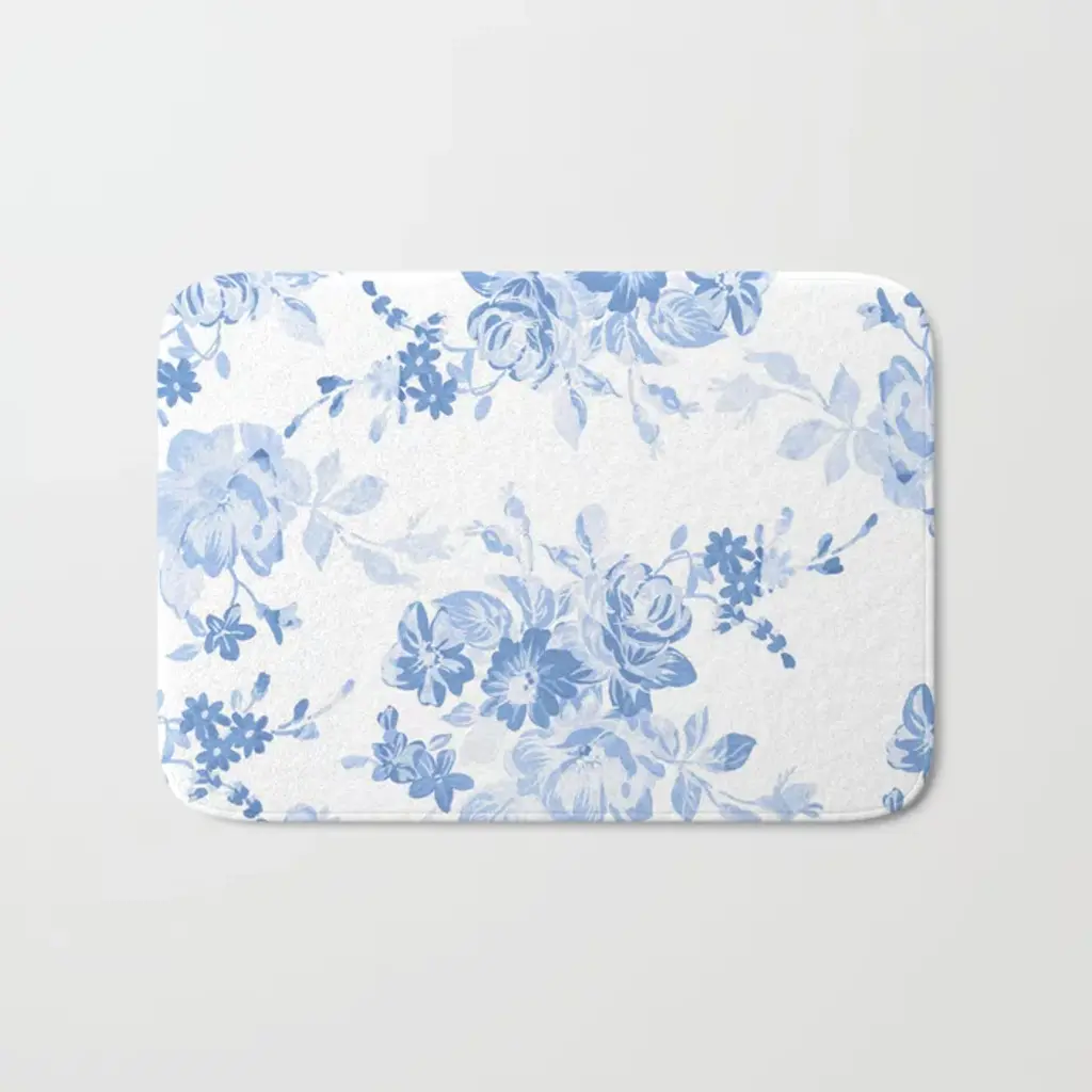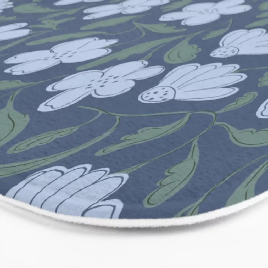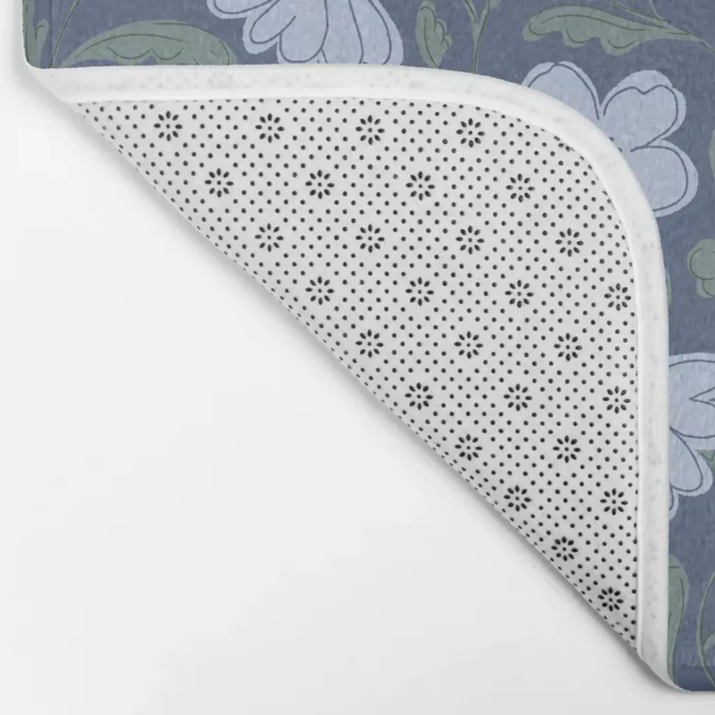 Moody Botanical Blooms On Slate Blue Bath Mat