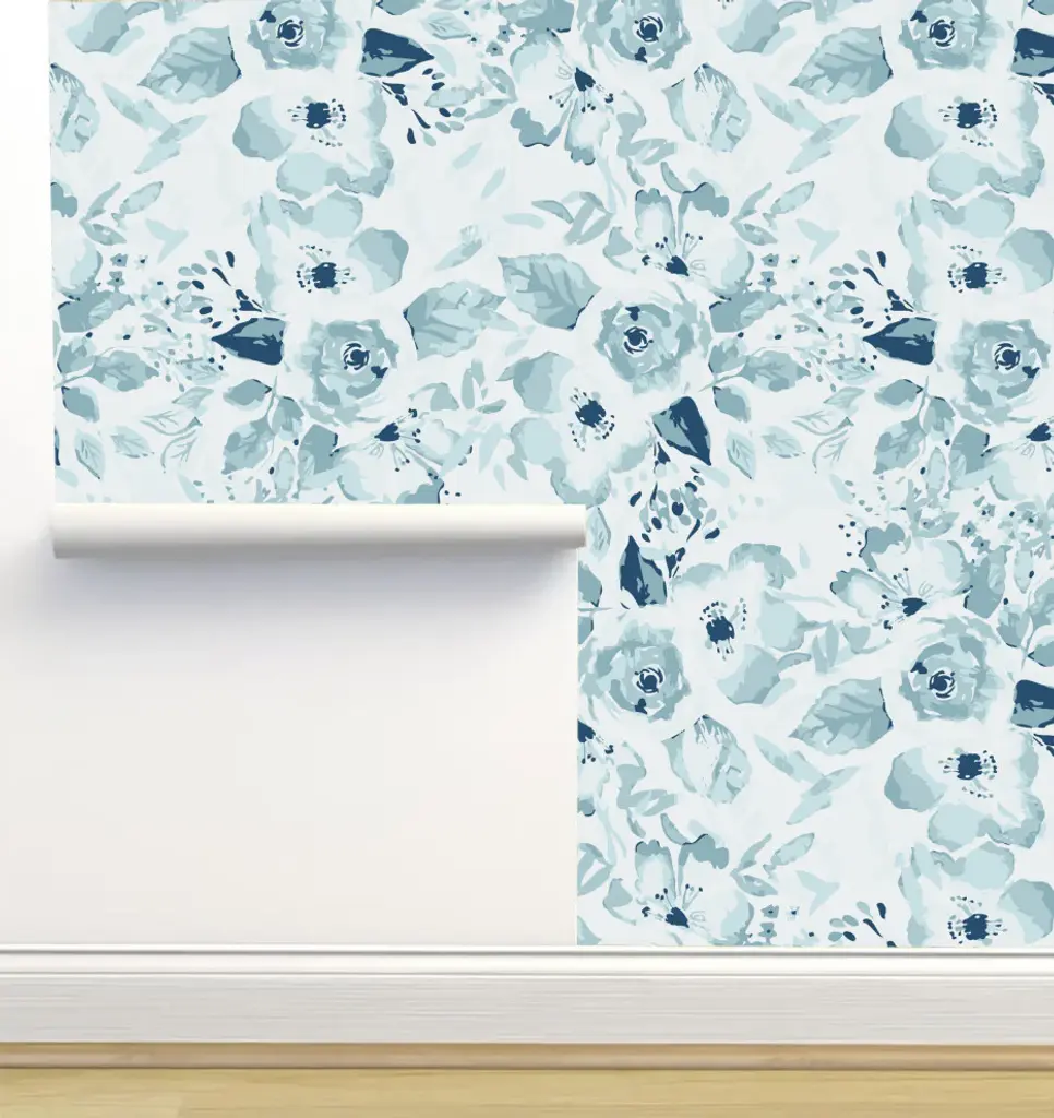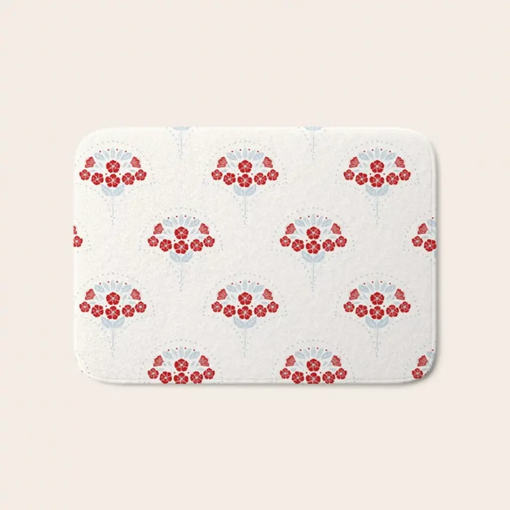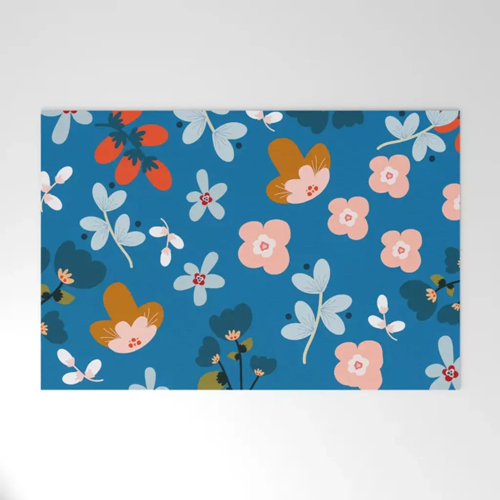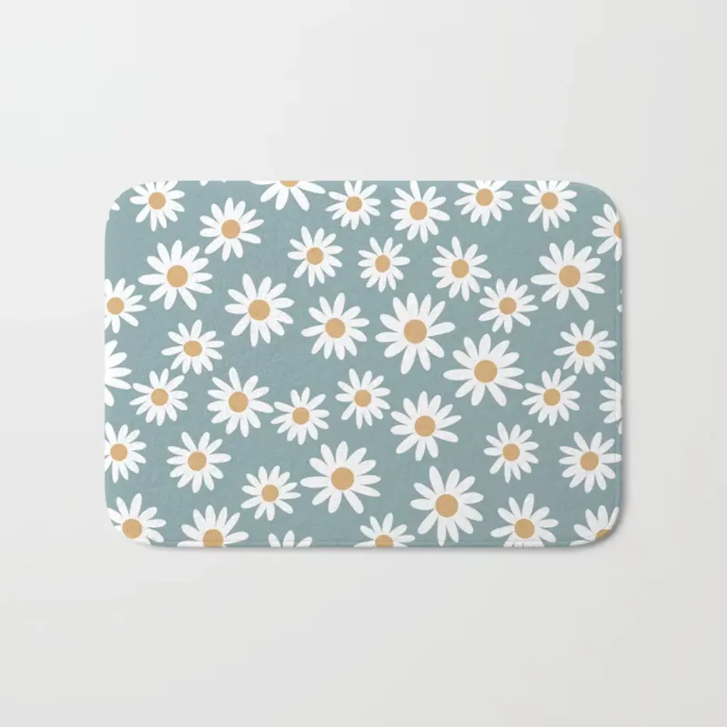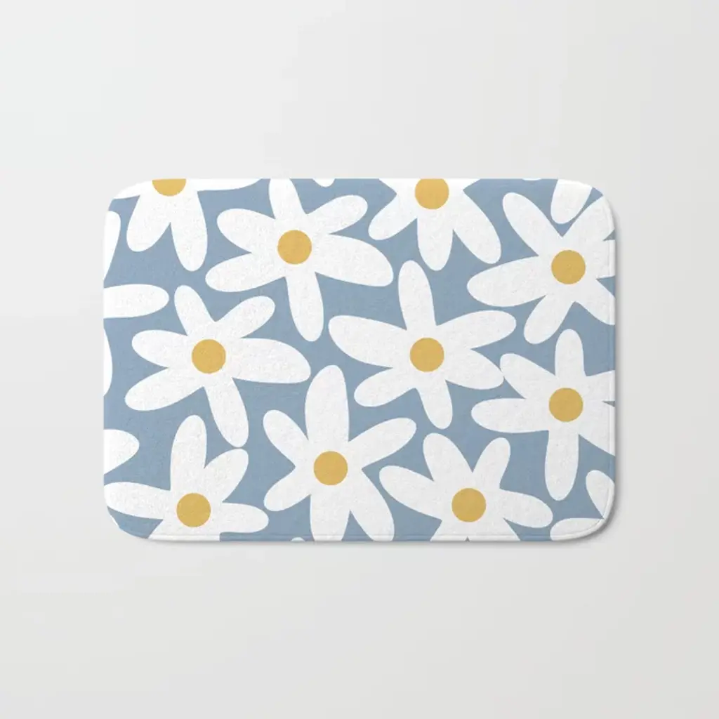 Moody Botanical Blooms On Slate Blue Bath Mat