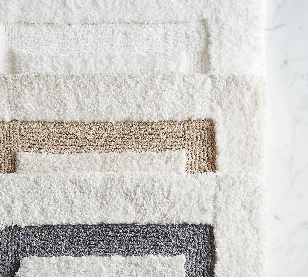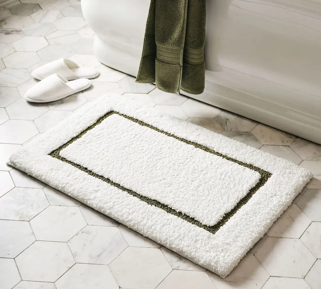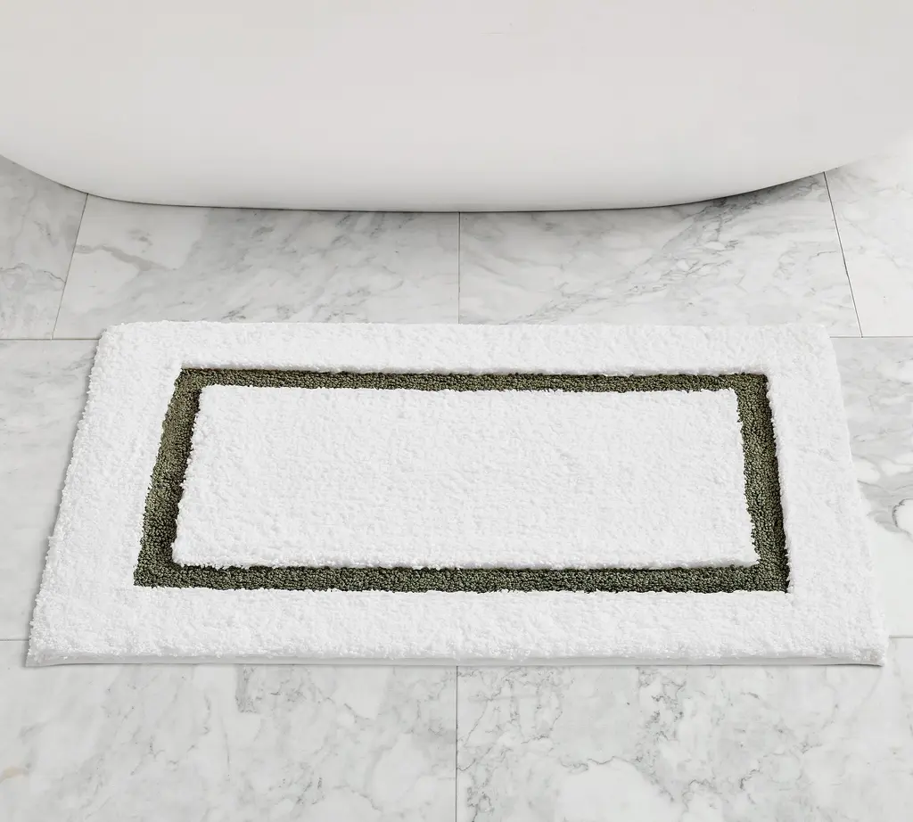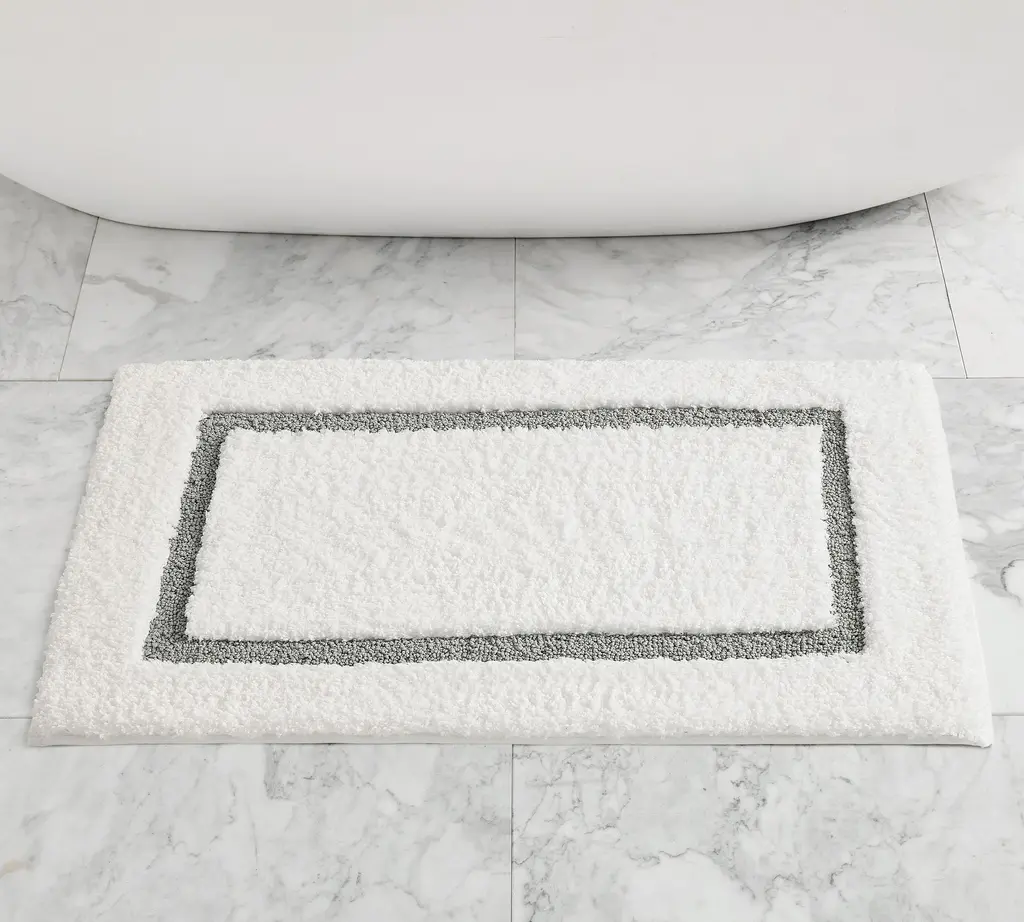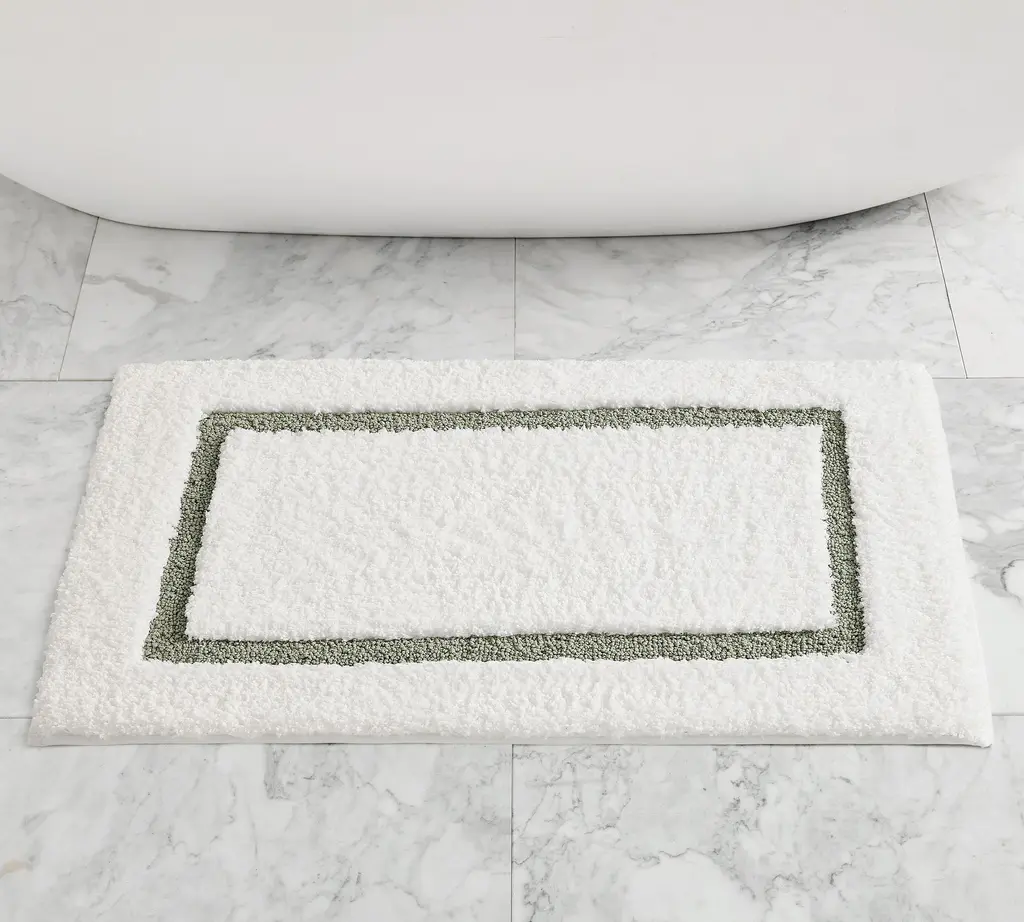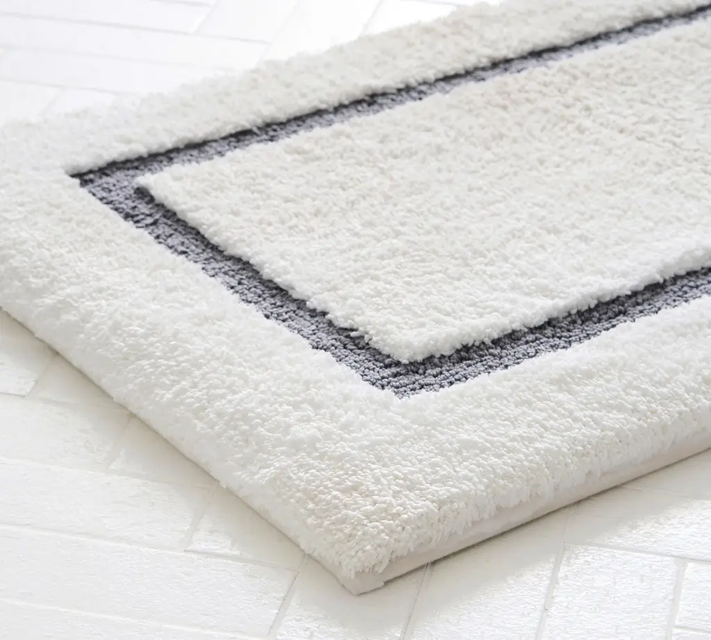 Step onto softness with our ultra-absorbent mat. Designed with fluffy polyester and memory foam, it's the ultimate cozy under-foot feeling. Find the colorful border that coordinates best with your towels and decor.