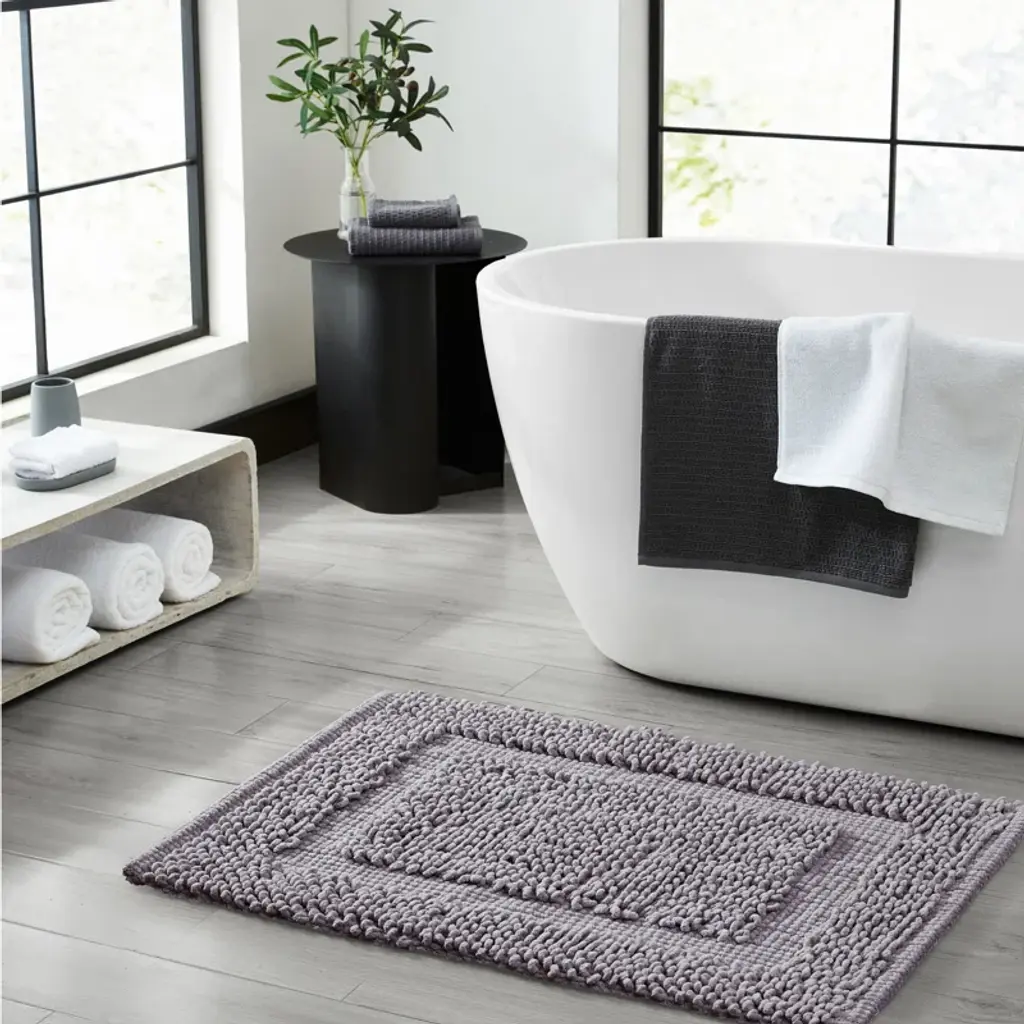 Re-imagine your bathroom decor with this understated bath mat – the right blend of comfort and absorbency. Its rectangular shape is crafted from cotton for a plush feel, and its neutral hue effortlessly complements any bath decor. We love how the tufted border adds a timeless design and a hint of depth to your main bathroom or guest bath. A thick pile gives your feet something to sink into while also being easy to clean. Plus, this rug has a quick-drying design that keeps water off of your floors after a bath or shower.