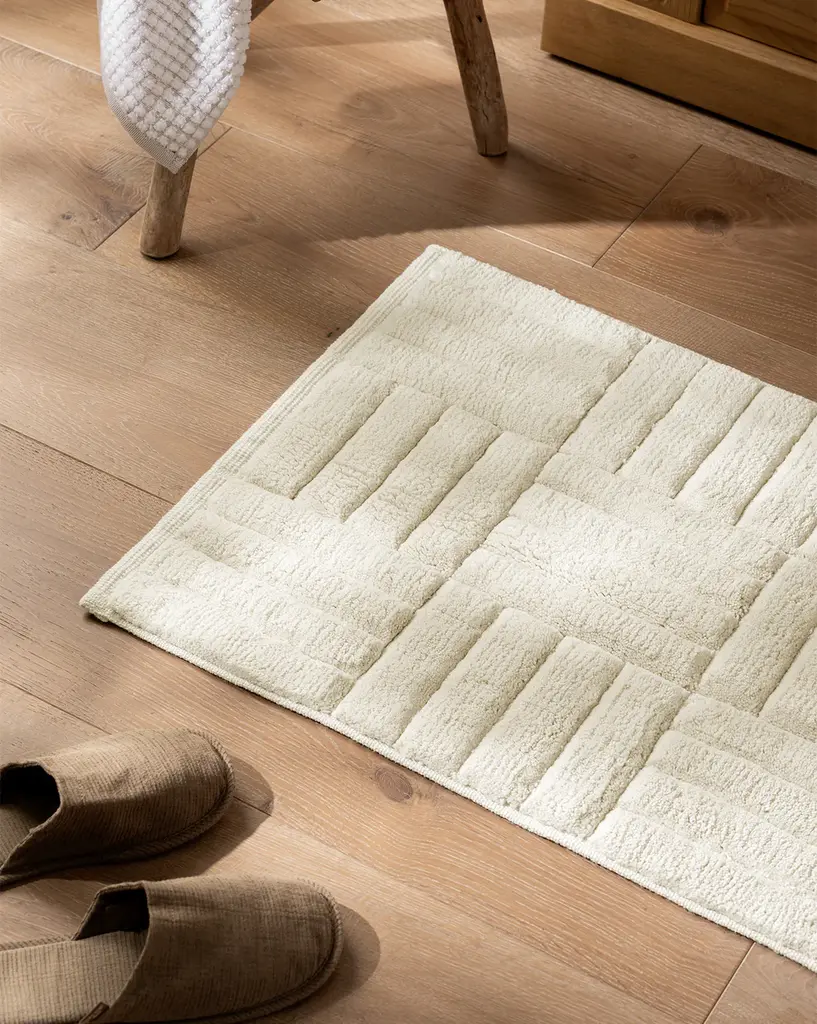 Ground your home with the natural warmth and rich texture of the Perdita Cotton Bath Mat. With refined linear detailing, this handwoven piece is beautiful on its own or layered, offering durable design that stands up beautifully to everyday life.