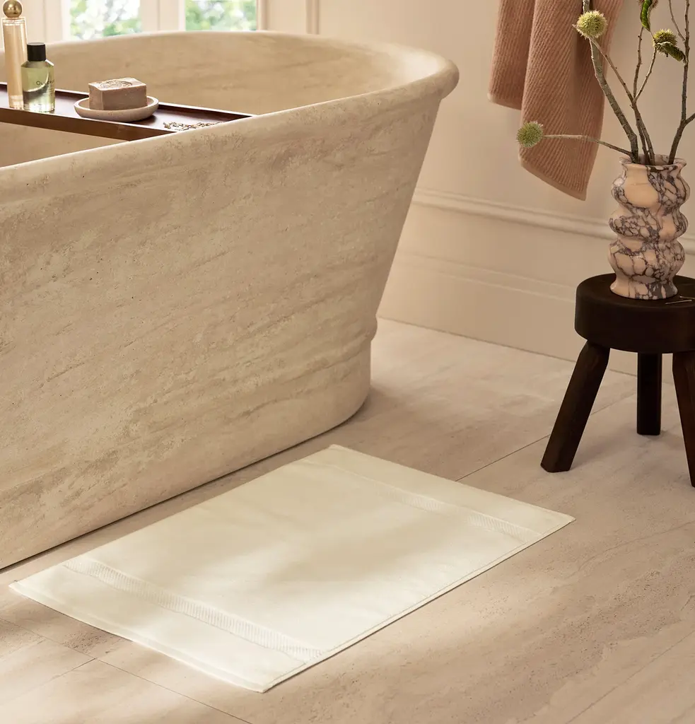 Made with a velvety soft hand-feel and dense weight, this bath mat is made with our most substantial bath fabrication. It starts with the highest quality yarns sourced from the finest 100% organic cotton on earth. Each thread is then luxuriously woven into terry loops to ensure these towels are the perfect balance of sumptuous and absorbent. The Feel Velvety soft with a dense, substantial weight The Look Classic styling with fluffy terry loops