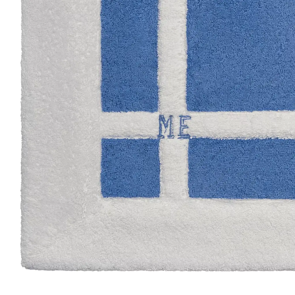 Pompidou Geometric Style White & Assisi Blue Bath Mat