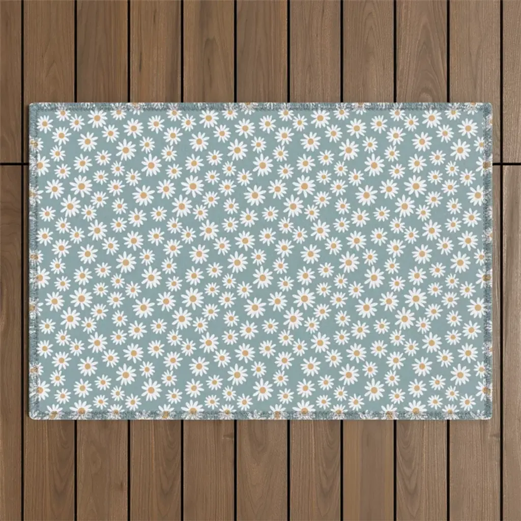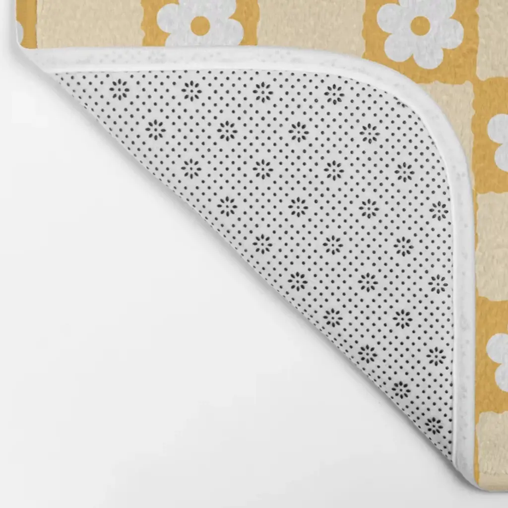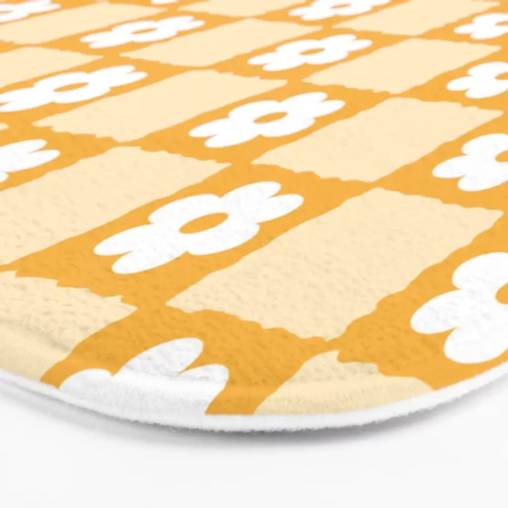 Retro Daisy Flower Checker In Yellow Bath Mat