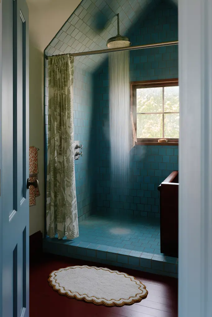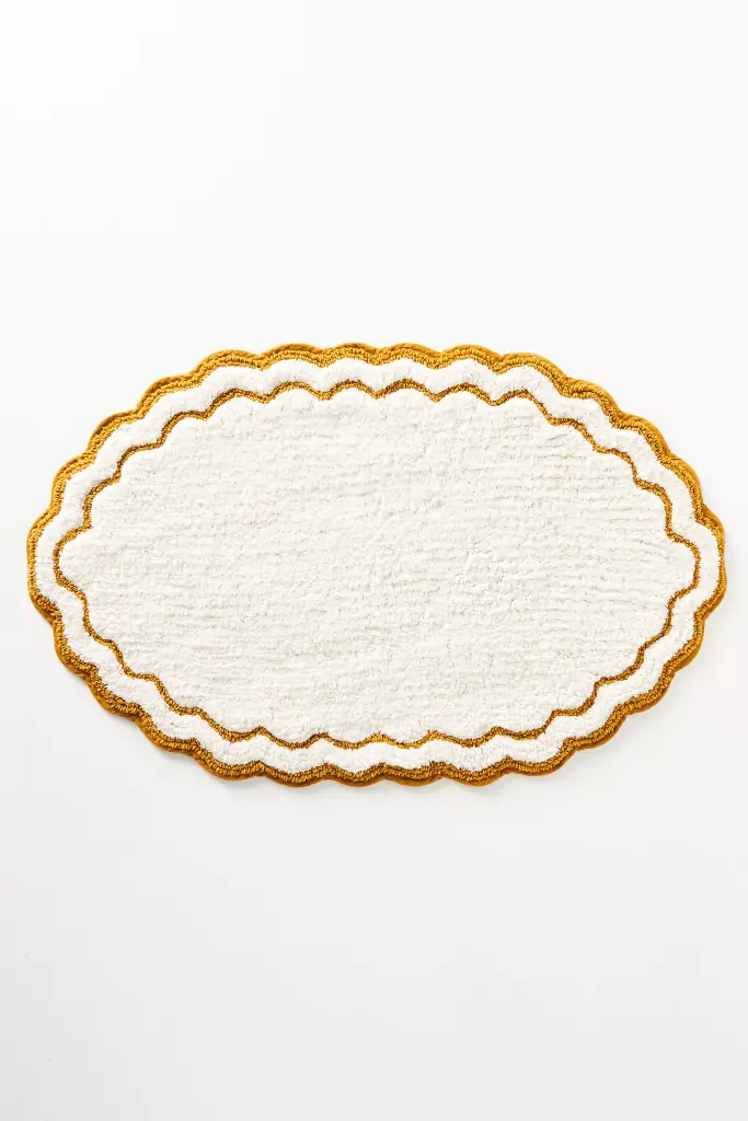 This tufted cotton bath mat with scalloped edges offers a charming pop of color underfoot.