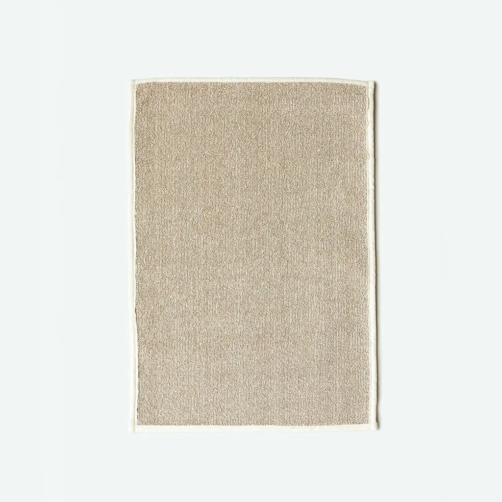 A minimalist, highly functional bath mat made from Sasawashi fabric, known for its impressive absorbency and natural deodorizing properties. This mat quickly absorbs water, preventing dampness, while the embedded kumazasa fibers naturally fight odors and mildew. The textured, woven surface provides a gentle exfoliation, keeping feet fresh and preventing dust buildup, making it an ideal choice for a clean and modern bathroom aesthetic. An absorbent bath mat crafted with stiff, exfoliating, and naturally deodorizing Sasawashi fibers. This unique fabric combines high absorbency with gentle exfoliation and odor control, creating a refreshing post-bath experience.