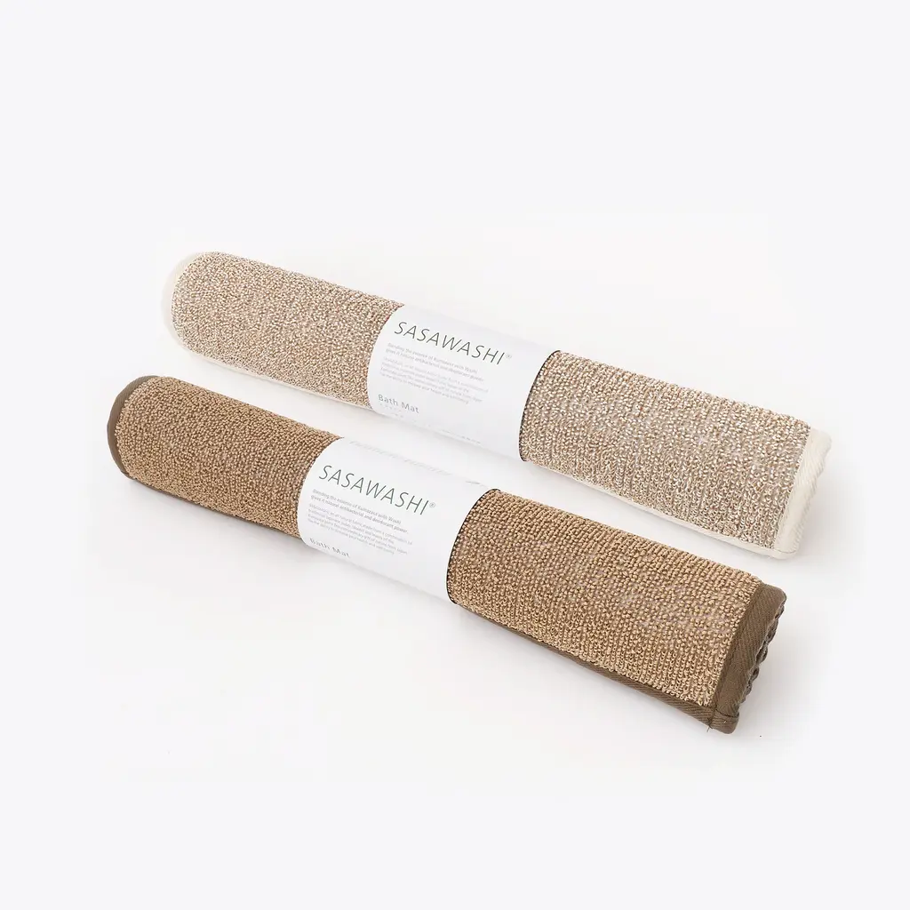 Bare feet need attention too. This bath mat answers the call. Handwoven from Sasawashi fabric—a blend of fine washi paper threads and antibacterial Kumazasa bamboo fibers—this mat absorbs water almost twice as well as cotton. It’s smooth yet slightly textured (a sand-like touch), gently drying your feet while inviting circulation—and a sense of spa‑style calm. The Kumazasa bamboo lends natural antimicrobial and deodorizing power, keeping the mat fresh long after the towels are wet. No odors. No mildew. Just clean, dry comfort. Lightweight, lint-free, and quick to dry itself, this mat moves with you—be it into the bathroom, near the sink, or on a bedroom floor—as quietly and efficiently as it wicks moisture away. The anti-slip backing keeps it anchored in place, so each step feels secure. Offered here in a warm brown tone across three sizes (Small: 35 × 45 cm, Medium: 45 × 65 cm, Large: 55 × 75 cm), it adapts to compact spaces and larger baths alike, while staying unapologetically minimalist.