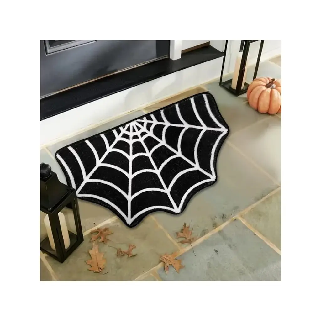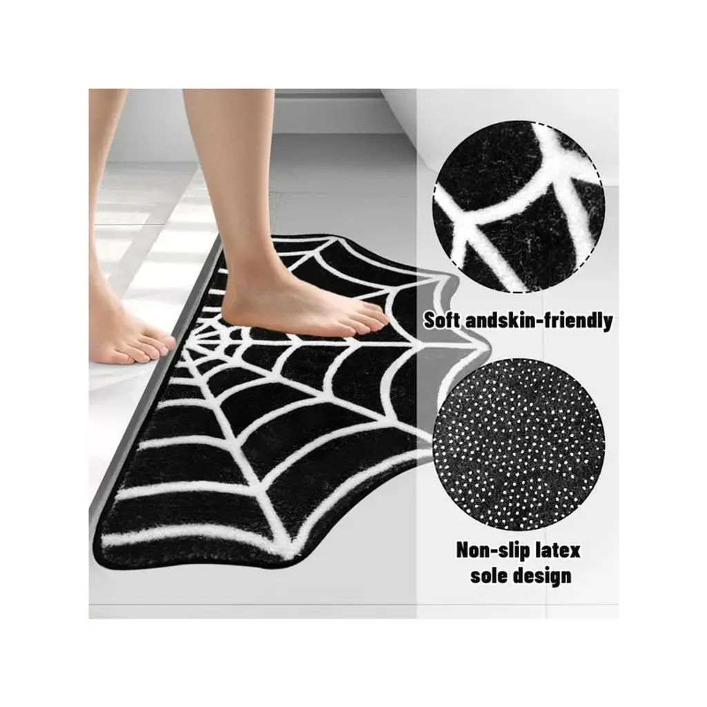 Gothic Decor: Spider web bathmat complements your gothic furniture, wednesday decor, satanic decor, dark witchy bathroom decor or other oddities and curiosities. Specifications Material: Polyester Color: Black and White Size: 50*80cm/19.68*31.49inch Package contents: 1Pc Spider Web Bath Mat Note: 1.Due to manual measurement, there will be a slight error in the size. 2.Due to the light and screen difference, the item's color may be slightly different from the pictures. Please understand.