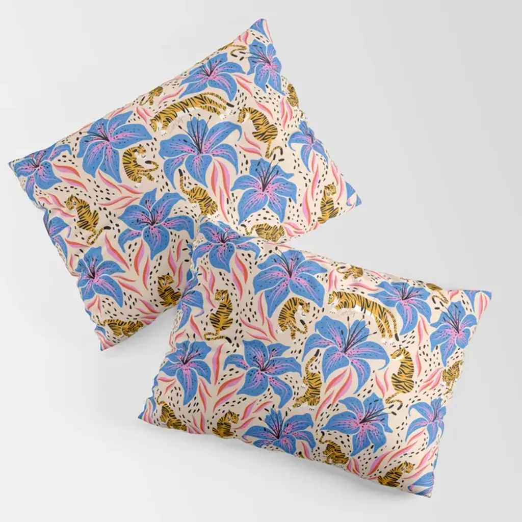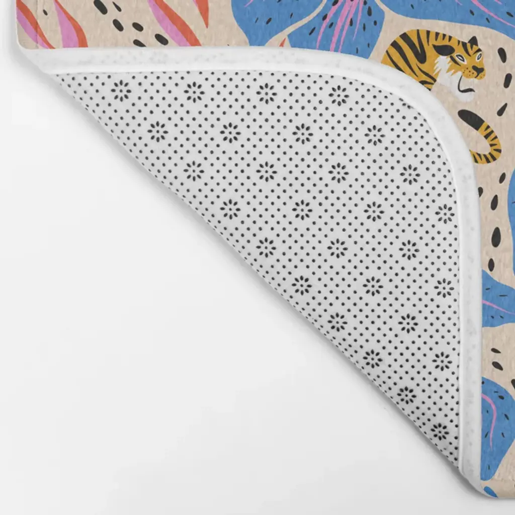 Tigers & Tiger Lilies – Blue & Yellow Bath Mat