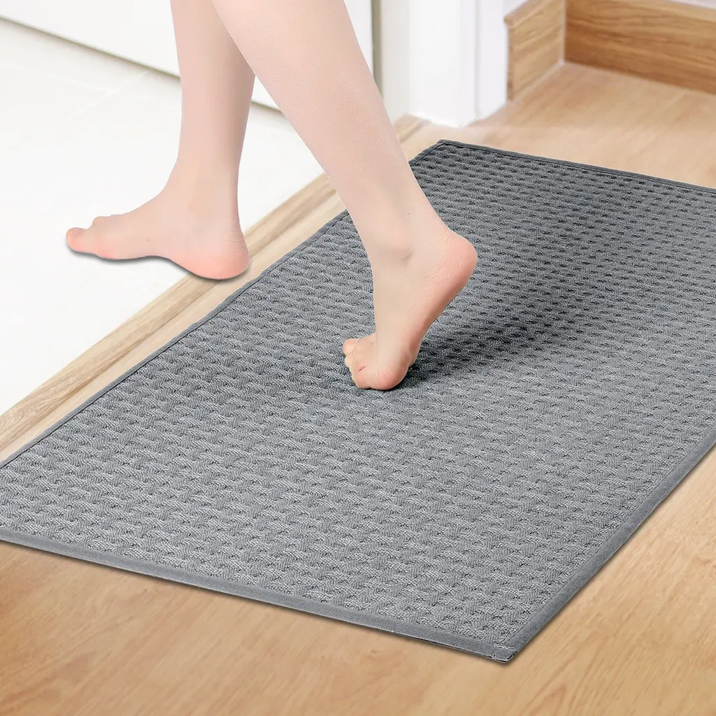Weaving Pattern Bathroom Rugs Non Slip, Soft Absorbent Thick Bath Mat, Quick Dry Shower Mats - Grey - 16" X 24"