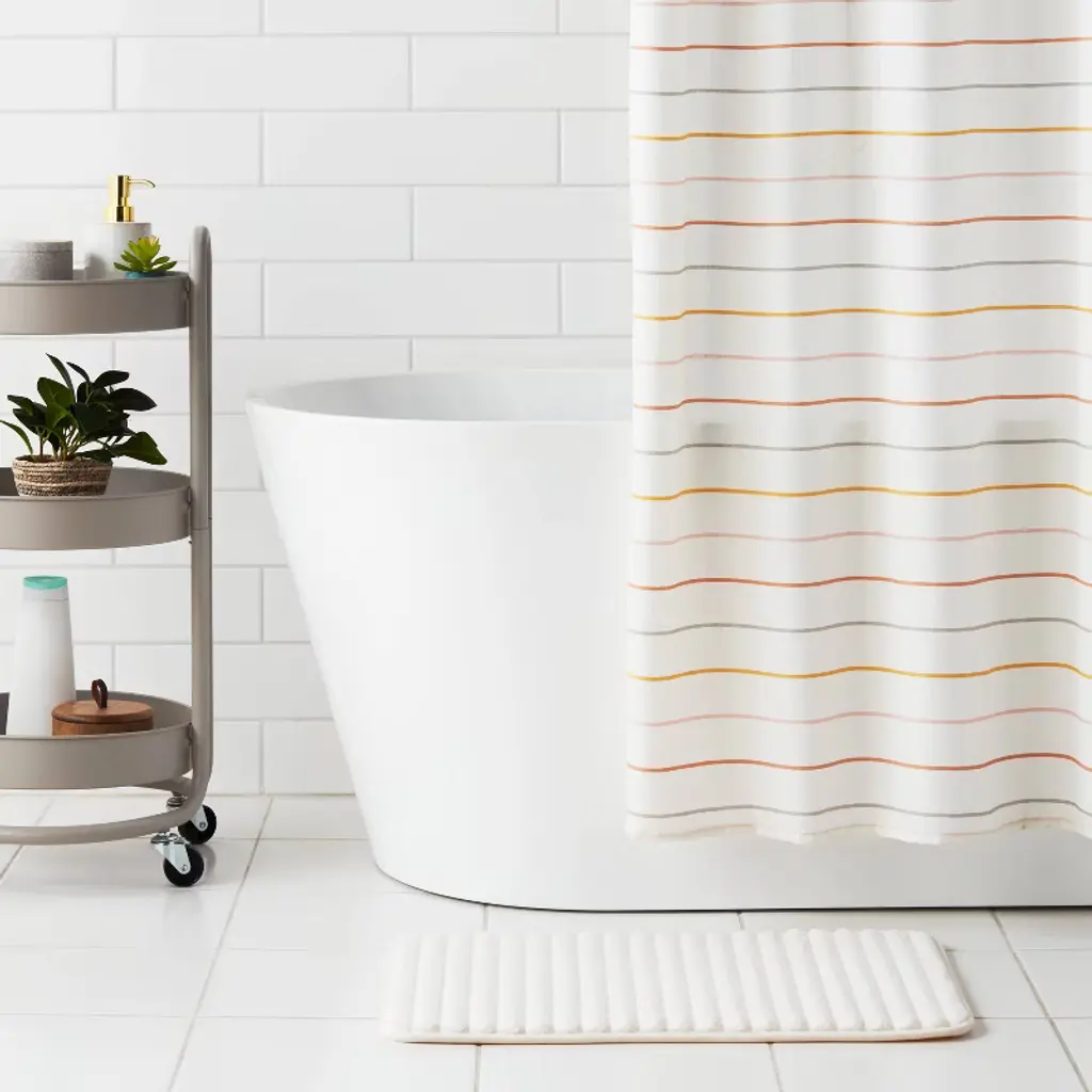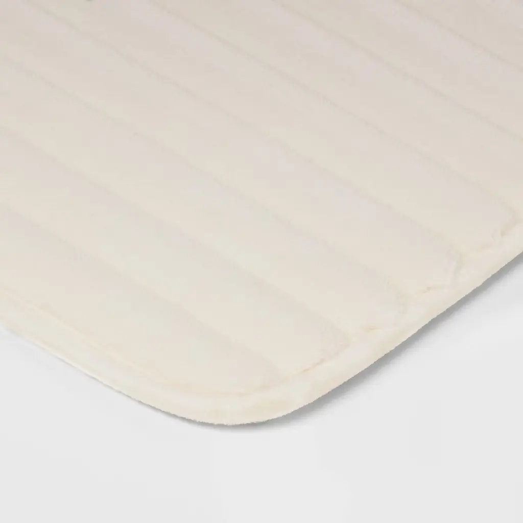 Elevate your bath space with comfort and style with this Ribbed Cushion Foam Bath Rug from Room Essentials™. The microfiber bath rug is designed in a rectangular shape with rounded corners and features a ribbed design for textural appeal. A warm, stylish accent you'll love adding to your bathroom floor, it also has non-skid backing to help keep it from slipping or sliding when you step on it. Place it in front of your bathtub, shower or sink for functional style.Room Essentials™: Everyday Value