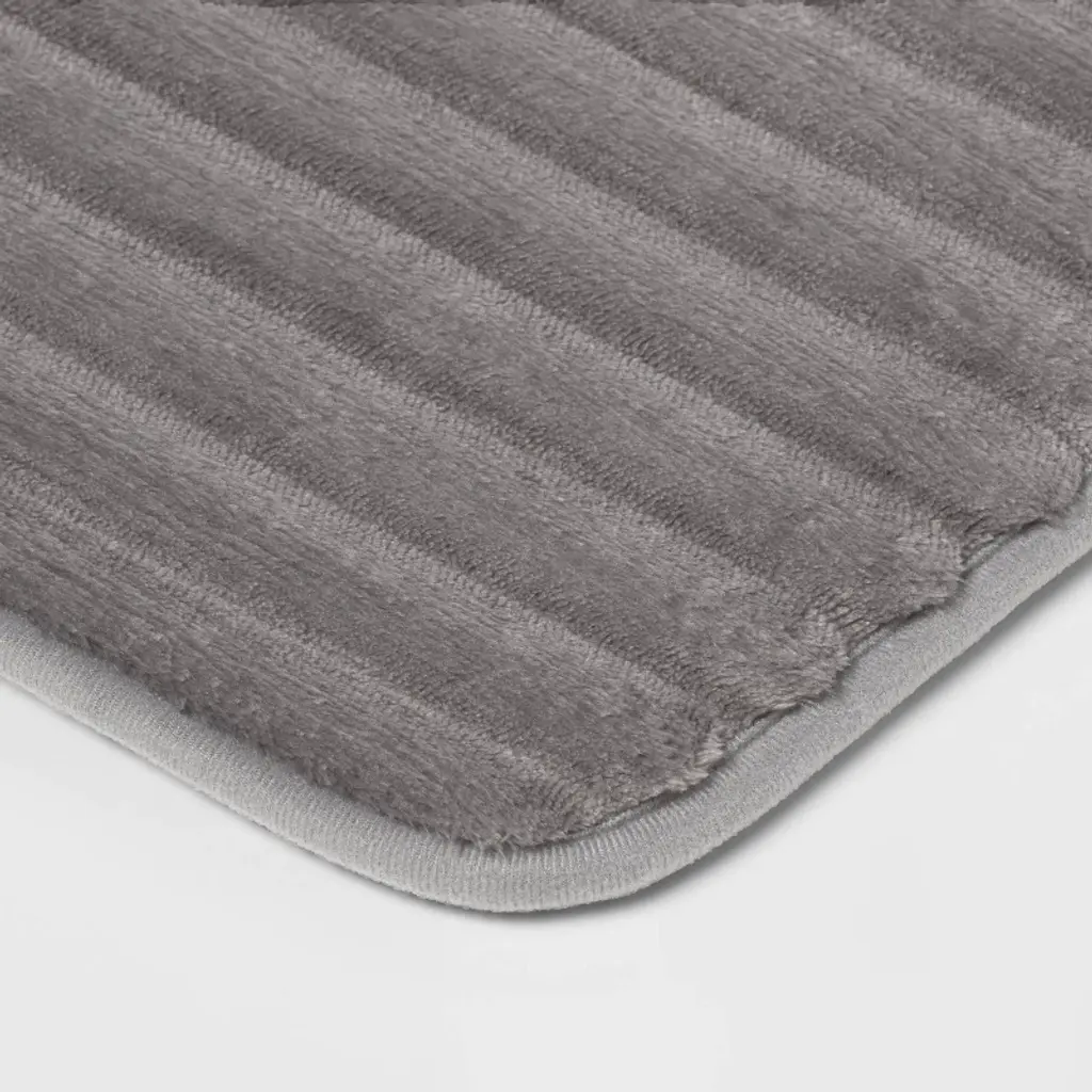 17"x24" Ribbed Cushion Foam Bath Rug Dark Gray - Room Essentials™