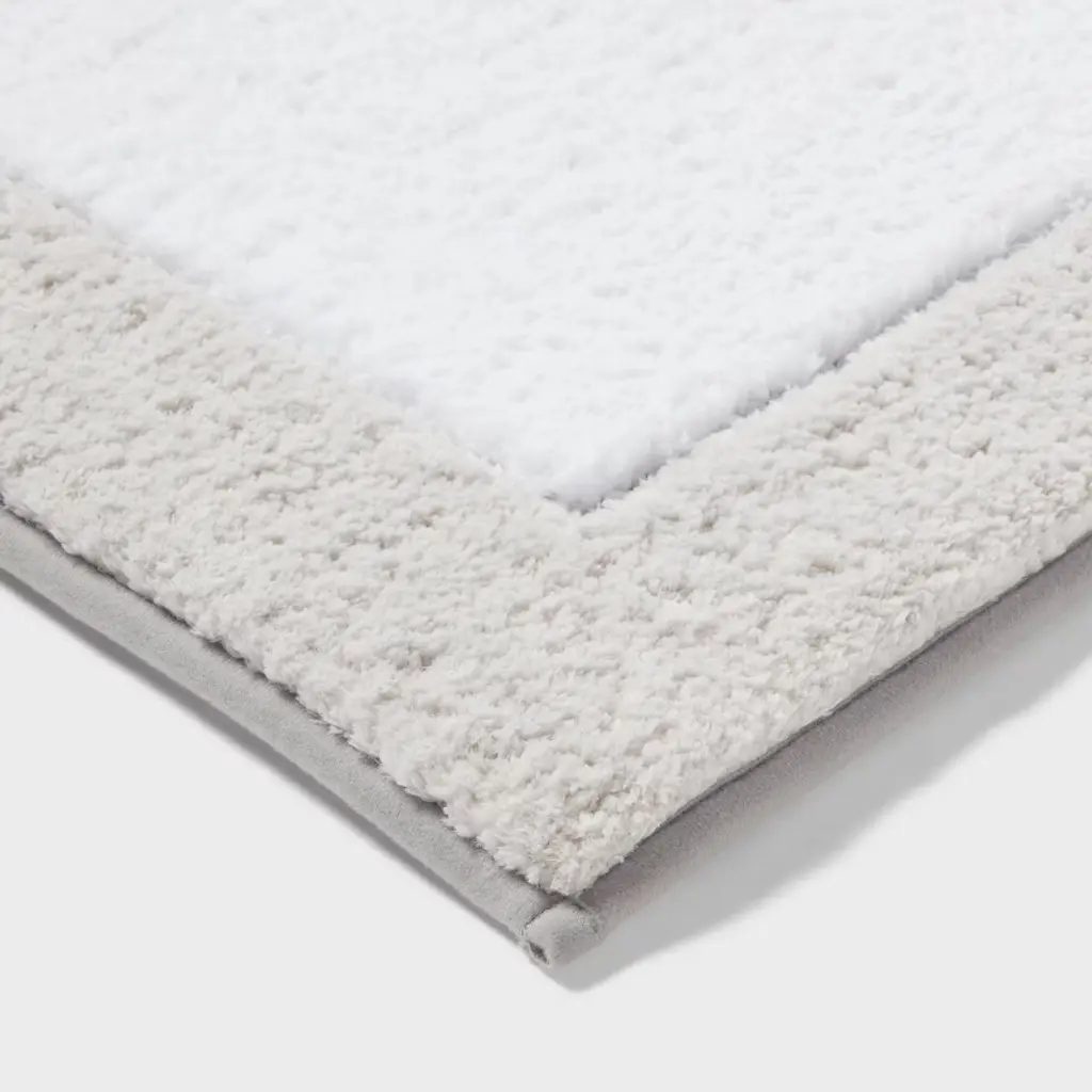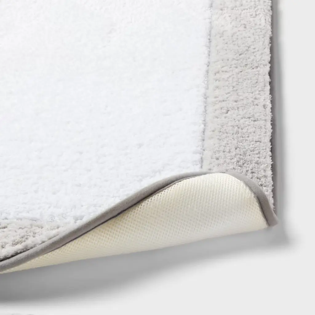 Add a pop of texture to your bathroom with this Fluffy Border Memory Foam Bath Rug from Threshold™. The tufted bath rug is designed in a rectangular shape, framed by a fluffy border for added textural appeal. It comes with a layer of memory foam for enhanced underfoot comfort and a non-skid backing to help keep it from slipping or sliding. Place it in front of your bathtub, shower or sink for functional style. Threshold™: Looks like home, feels like you.
