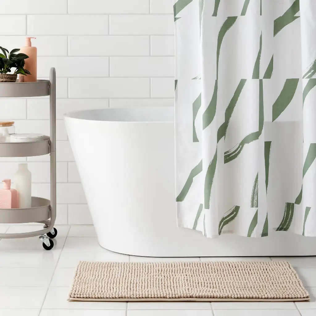 Turn your bath space into a home spa oasis with this Low Chenille Memory Foam Bath Rug from Threshold™. The memory foam lining brings you maximum comfort while you dry off and get ready to start your day, and it has a PVC backing to help keep it from slipping or sliding when you step on it. The chenille construction adds a fine finish to the whole. Toss it by the tub or place it in front of the vanity to enjoy its plush comfort as you go through your morning routine.Threshold™: Looks like home, feels like you.