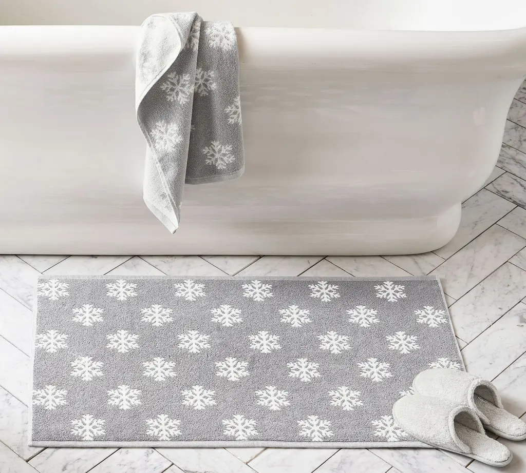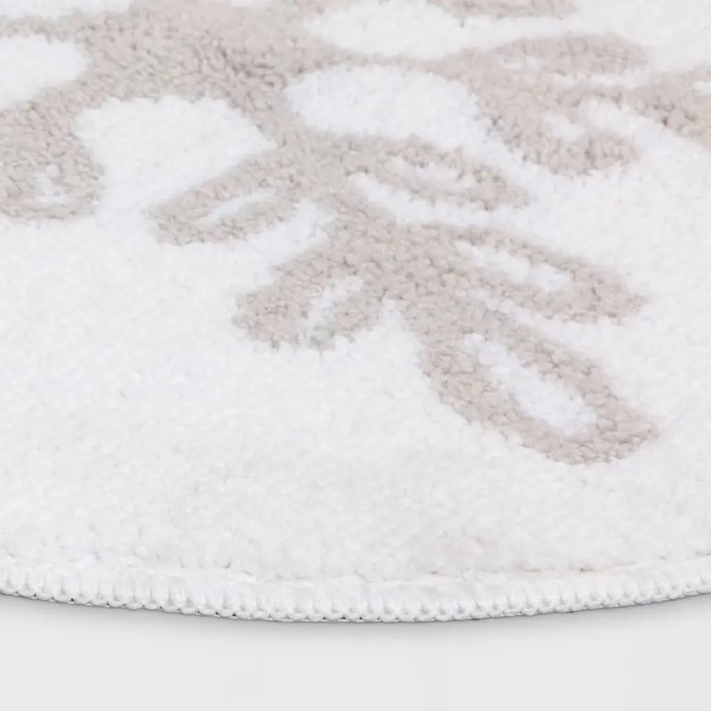 Add a touch of festivity and soft texture to your everyday bath routine with the Round Snowflake Christmas Bath Rug from Wondershop™. This knitted bath rug is crafted from midweight polyester fabric to provide soft underfoot comfort as you step out of the bath, while the latex backing helps keep it in place. Showcasing a snowflake in gray on a white backdrop, you can place this round rug by the tub or in front of the sink to enjoy plush comfort as you go through your daily routine.Welcome to the Wondershop™.