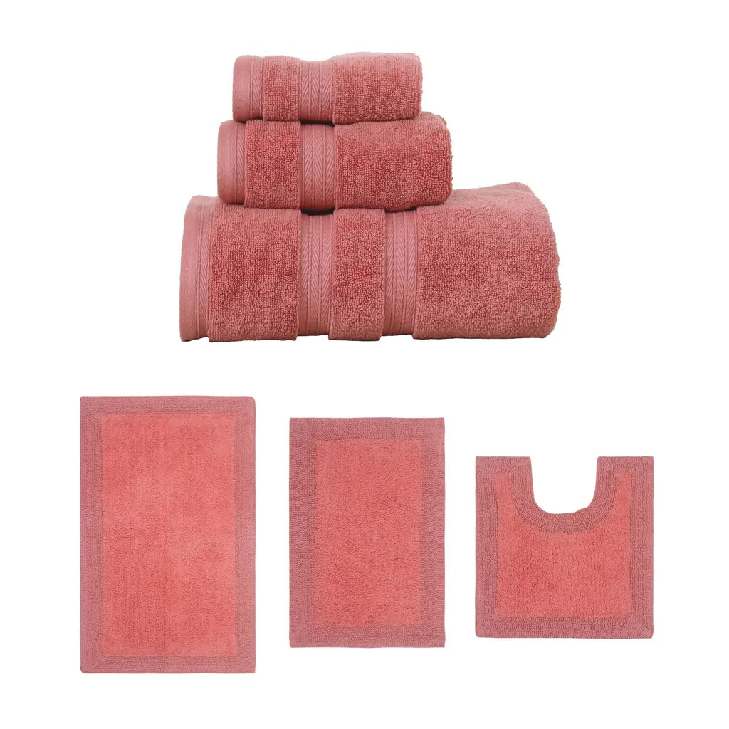 2Pc 17"x24" And 20"x34" Performance Plus Textured Cotton Striped Non Skid Bath Rug Set Terracotta - Threshold™