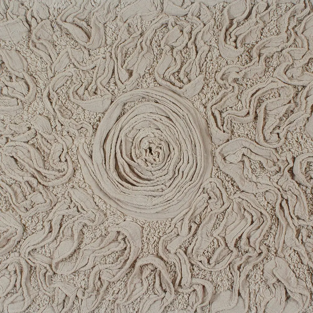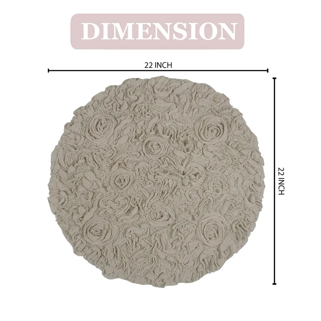 Bell Flower Bathroom Rug, Cotton Soft, Water Absorbent Bath Rug, Non Slip Shower Rug Machine Washable 22" Round - Linen