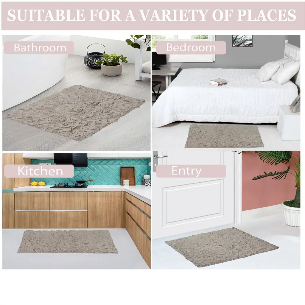 Indulge in the ultimate luxury for your bathroom with our exquisite premium bath rugs from the Bell Flower Collection. Crafted with meticulous attention to detail, these rugs are more than just functional accessories – they are a statement of elegance and sophistication.Our Bell Flower Collection premium bath rugs are made from the finest materials, offering unparalleled softness and comfort underfoot. Step out of the shower or bath onto a plush oasis that pampers your senses with its velvety texture. The superior quality of our rugs ensures they remain sumptuously soft and absorbent, even after countless uses.The design of our Bell Flower Collection premium bath rugs is a testament to timeless style. With a range of tasteful colors and patterns to choose from, they effortlessly complement your bathroom decor, adding a touch of refinement to your space. Whether your aesthetic is modern, classic, or somewhere in between, these rugs seamlessly integrate into any bathroom setting.Durability is at the core of our Bell Flower Collection premium bath rugs. Engineered to withstand daily wear and tear, they are not only exceptionally comfortable but also built to last. The non-slip backing ensures safety and stability, preventing any unwanted slips or falls.Maintenance is a breeze with our Bell Flower Collection premium bath rugs. They are easy to clean and maintain their beauty over time, making them a smart and stylish investment for your bathroom.Elevate your daily routine and transform your bathroom into a sanctuary of opulence with our premium bath rugs from the Bell Flower Collection. Immerse yourself in the epitome of comfort and style, making every step a luxurious experience. Upgrade your bathroom today and experience the difference of true premium quality.