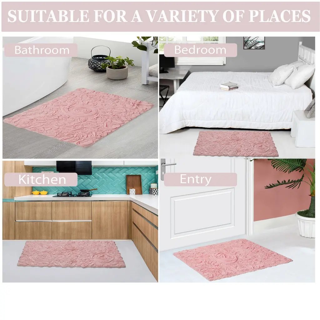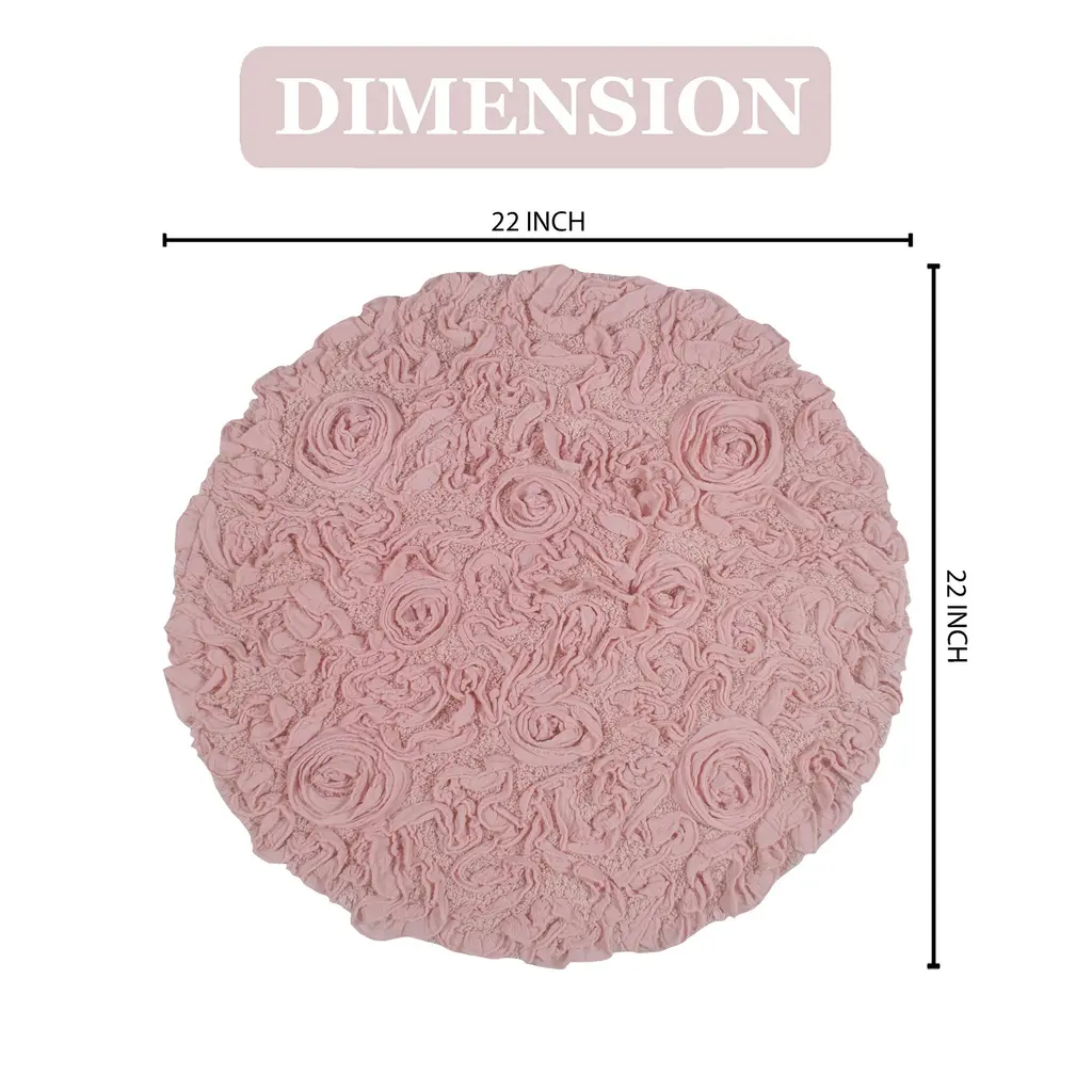 Bell Flower Bathroom Rug, Cotton Soft, Water Absorbent Bath Rug, Non Slip Shower Rug Machine Washable 22" Round - Pink