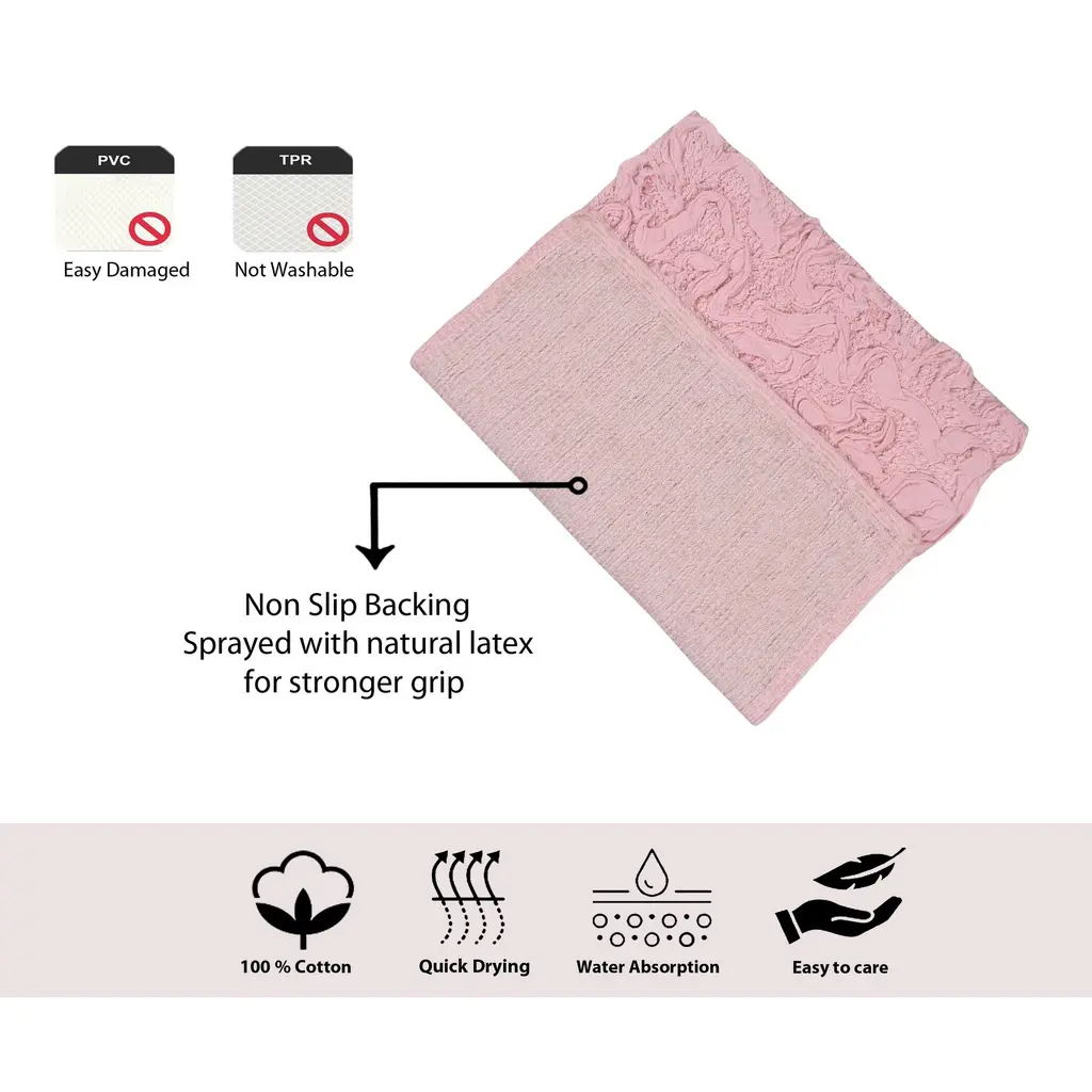 Indulge in the ultimate luxury for your bathroom with our exquisite premium bath rugs from the Bell Flower Collection. Crafted with meticulous attention to detail, these rugs are more than just functional accessories – they are a statement of elegance and sophistication.Our Bell Flower Collection premium bath rugs are made from the finest materials, offering unparalleled softness and comfort underfoot. Step out of the shower or bath onto a plush oasis that pampers your senses with its velvety texture. The superior quality of our rugs ensures they remain sumptuously soft and absorbent, even after countless uses.The design of our Bell Flower Collection premium bath rugs is a testament to timeless style. With a range of tasteful colors and patterns to choose from, they effortlessly complement your bathroom decor, adding a touch of refinement to your space. Whether your aesthetic is modern, classic, or somewhere in between, these rugs seamlessly integrate into any bathroom setting.Durability is at the core of our Bell Flower Collection premium bath rugs. Engineered to withstand daily wear and tear, they are not only exceptionally comfortable but also built to last. The non-slip backing ensures safety and stability, preventing any unwanted slips or falls.Maintenance is a breeze with our Bell Flower Collection premium bath rugs. They are easy to clean and maintain their beauty over time, making them a smart and stylish investment for your bathroom.Elevate your daily routine and transform your bathroom into a sanctuary of opulence with our premium bath rugs from the Bell Flower Collection. Immerse yourself in the epitome of comfort and style, making every step a luxurious experience. Upgrade your bathroom today and experience the difference of true premium quality.
