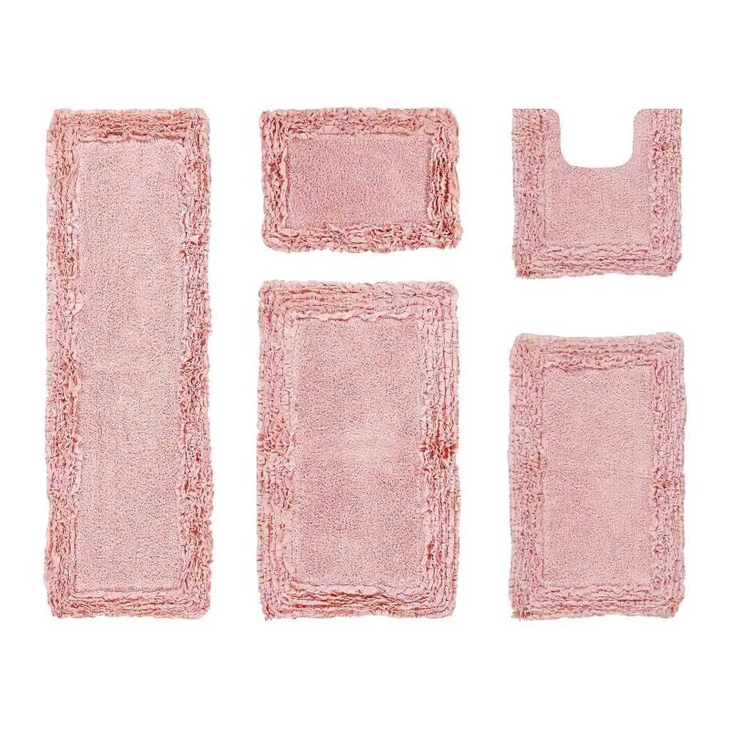 Transform your bathroom into a luxurious retreat with the Hotel Bath Rug Set from Better Trends. Crafted from 100% premium cotton, these rugs feature a tufted weave that offers a plush and soft feel underfoot, providing ultimate comfort every time you step out of the shower or bathtub. The two-tone reversible design not only enhances the aesthetic of your space but also extends the life of the rug, allowing you to flip it over for a fresh look whenever needed. Oeko-Tex Certified, these rugs include no harmful substances or chemicals, ensuring they are safe for everyday use. With its highly absorbent nature, these rugs effectively soak up moisture, keeping your floors dry and spotless in high-moisture areas like in front of the shower, bathtub, or sink. Designed for easy maintenance, the Hotel Bath Rug Set is machine washable, making it a convenient and low-maintenance choice for busy households. Its durability and thick cotton construction ensure long-lasting use, while the soft texture provides added comfort. Available in multiple sizes and colors, this bath rug set easily complements any bathroom decor, offering both functionality and style. Whether you're upgrading your bathroom or adding a touch of elegance, this piece set delivers a perfect combination of comfort, luxury, and practicality for your home.
