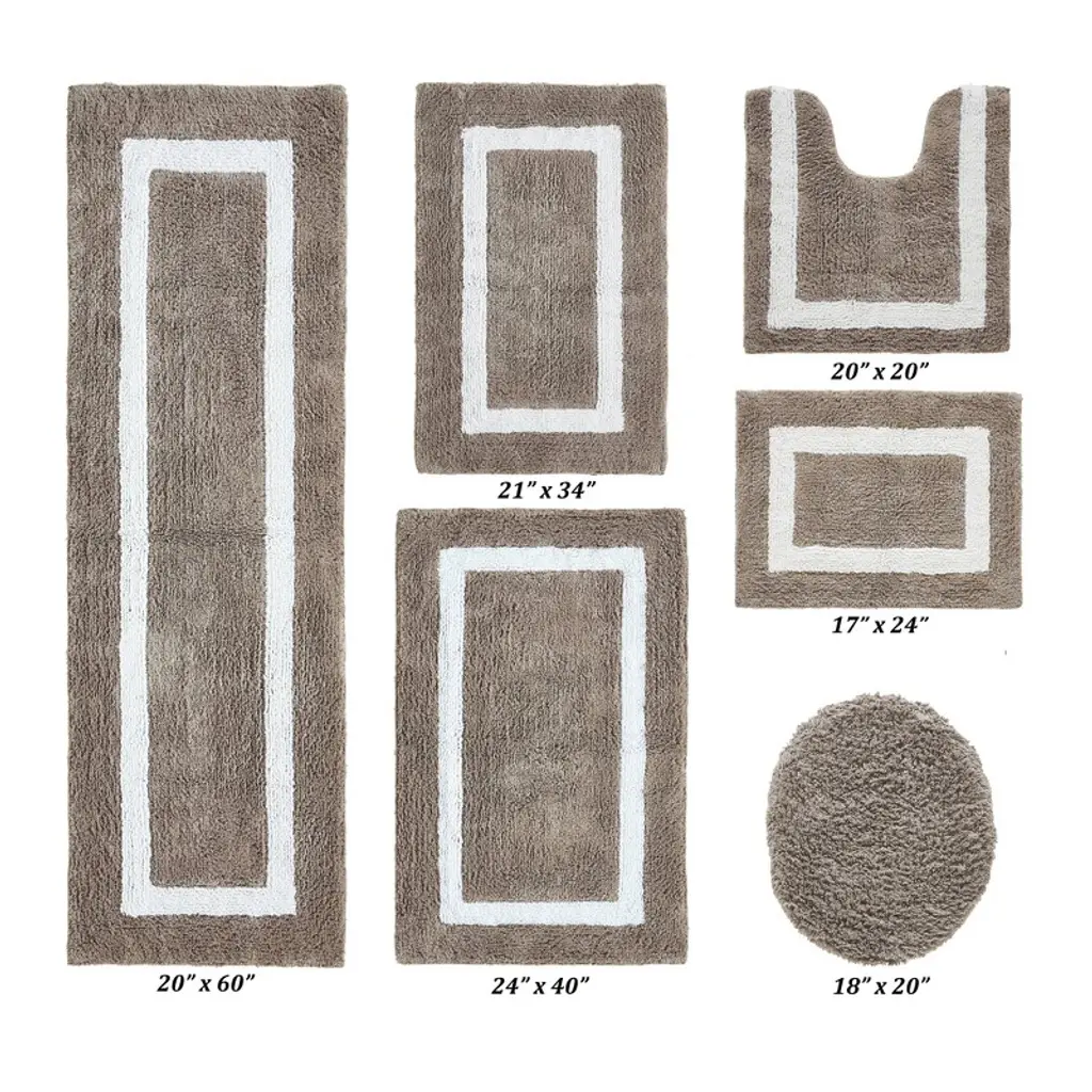 Better Trends Hotel Multi 100% Cotton Tufted Two Tone Reversible Bath Rug Set 6 Piece Set - Beige/white