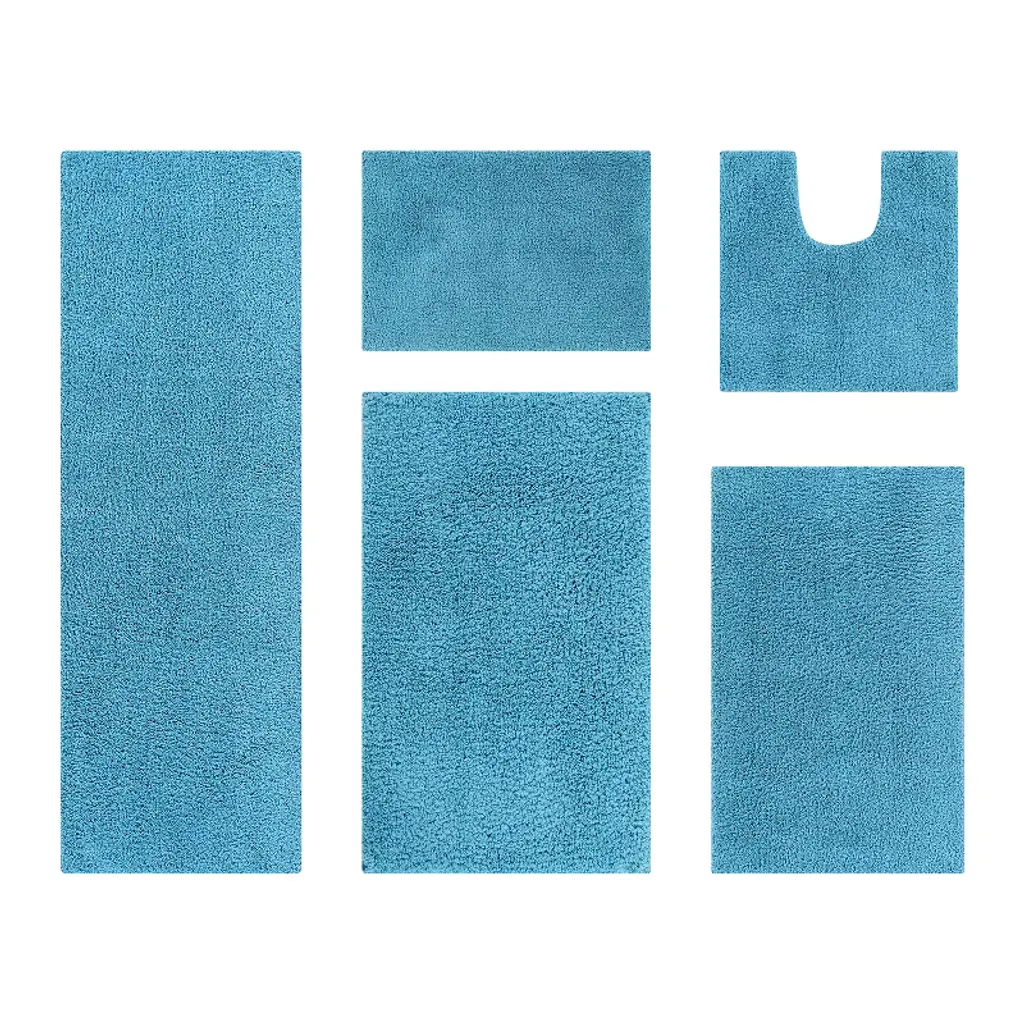 The Shaggy Border Collection 5-Piece Bath Rug Set by Better Trends brings a perfect blend of luxury, comfort, and style to your bathroom. Crafted from 100% premium cotton, these bath rugs offer a soft, plush feel underfoot, providing a cozy and soothing experience after every bath or shower. The tufted weave construction enhances durability, while the super absorbent cotton quickly soaks up moisture, helping to keep your bathroom floors dry and fresh. The stunning ruffle border pattern adds an elegant, textured touch, elevating your bathroom décor with its sophisticated charm. This 5-piece set includes a variety of rug sizes to fit all key areas in your bathroom, including the bathtub, shower, sink, and toilet. Designed for convenience, the rugs are machine washable, ensuring they maintain their softness, color, and absorbency over time. Transform your bathroom into a luxurious retreat with the Shaggy Border Collection 5-Piece Bath Rug Set—where beauty, comfort, and functionality come together for an exceptional bathroom experience. Oeko-Tex Certified, these rugs include no harmful substances or chemicals, ensuring a safe and eco-friendly option for your home. The Shaggy Border Bath Rug Set is not only stylish but also practical, as it is machine washable for easy care and maintenance.