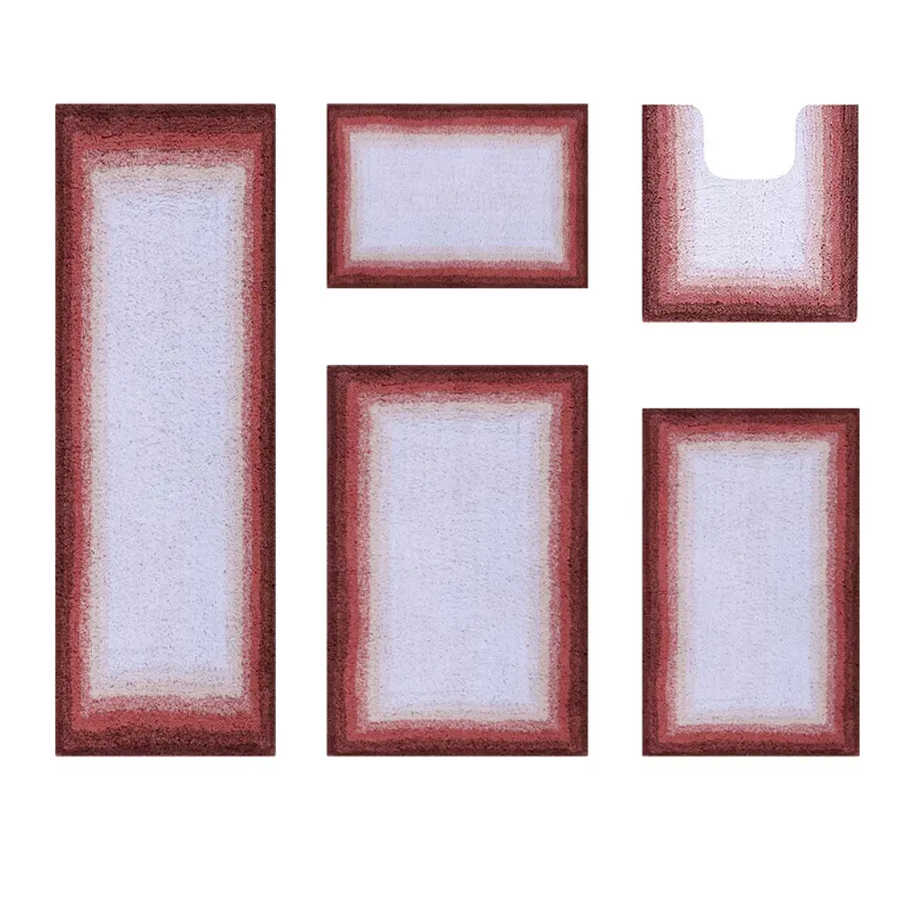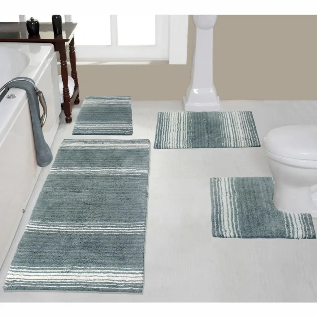 Upgrade your bathroom with the Torrent Collection 5-Piece Bath Rug Set, crafted from 100% soft cotton for exceptional softness and comfort. Featuring a luxurious tufted weave and a beautiful ombre pattern, these rugs add a sophisticated and modern touch to any bathroom décor. Designed to be highly absorbent, they quickly soak up moisture, helping to keep your floors dry and comfortable after every shower or bath. Available in four versatile colors—Beige, Gray, Rose, and Turquoise—this set effortlessly complements a wide range of bathroom aesthetics. Oeko-Tex Certified, the rugs are free from harmful substances or chemicals, ensuring safety for both you and the environment. The five-piece set includes rugs in multiple sizes, perfect for placement throughout your bathroom—by the shower, tub, sink, toilet, and even doorway—offering coordinated style and comfort in every area. Each rug features a non-slip backing for enhanced safety and stability on slippery floors. Machine washable for hassle-free care, the Torrent Collection rugs maintain their softness and vibrant colors wash after wash, making them a durable and stylish addition to your home.