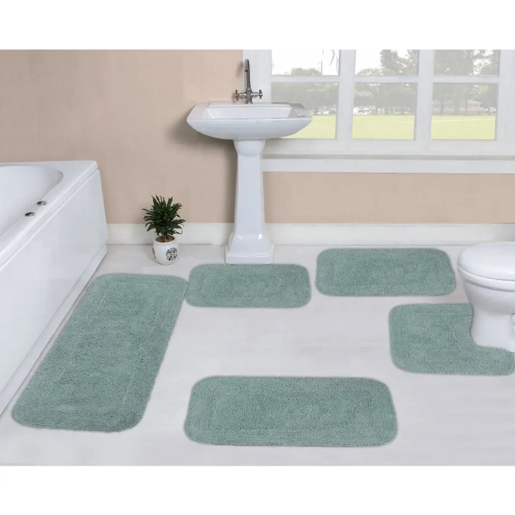 Better Trends Torrent 100% Cotton Tufted Non- Slip Backing 5 Piece Set Bath Rug Set - Turquoise