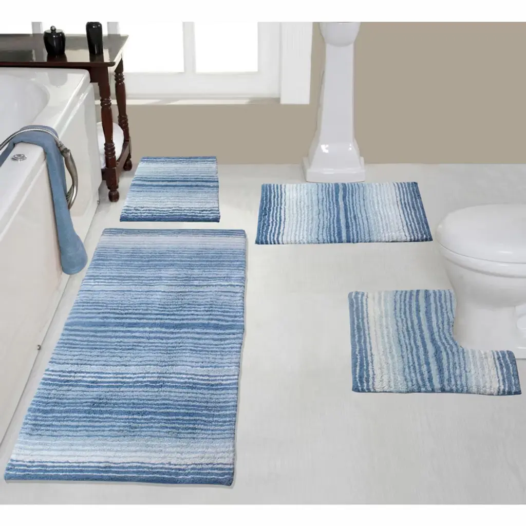 Upgrade your bathroom with the Torrent Collection 5-Piece Bath Rug Set, crafted from 100% soft cotton for exceptional softness and comfort. Featuring a luxurious tufted weave and a beautiful ombre pattern, these rugs add a sophisticated and modern touch to any bathroom décor. Designed to be highly absorbent, they quickly soak up moisture, helping to keep your floors dry and comfortable after every shower or bath. Available in four versatile colors—Beige, Gray, Rose, and Turquoise—this set effortlessly complements a wide range of bathroom aesthetics. Oeko-Tex Certified, the rugs are free from harmful substances or chemicals, ensuring safety for both you and the environment. The five-piece set includes rugs in multiple sizes, perfect for placement throughout your bathroom—by the shower, tub, sink, toilet, and even doorway—offering coordinated style and comfort in every area. Each rug features a non-slip backing for enhanced safety and stability on slippery floors. Machine washable for hassle-free care, the Torrent Collection rugs maintain their softness and vibrant colors wash after wash, making them a durable and stylish addition to your home.