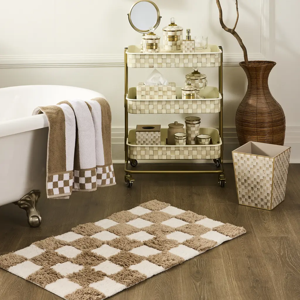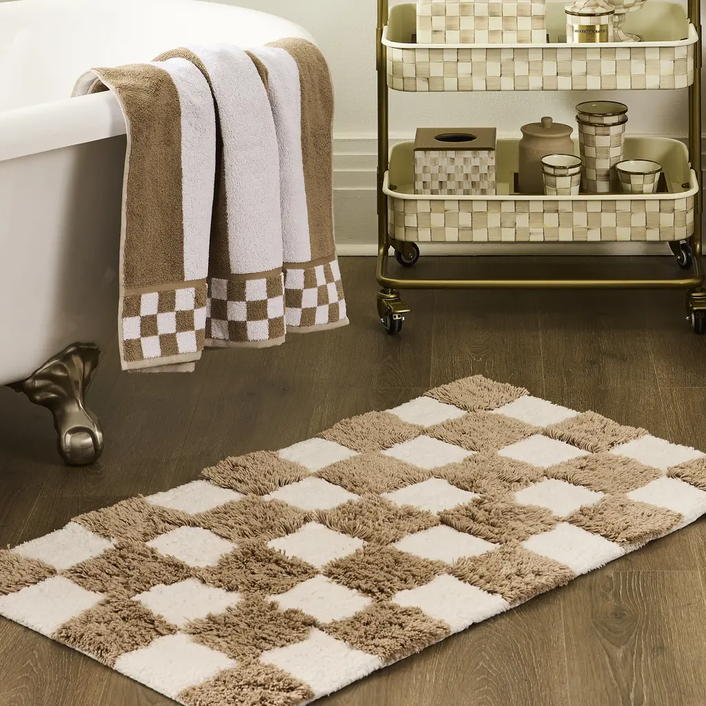 Just one step onto the thick, luxurious pile of our 100% cotton bath rug is all it takes. So soft underfoot it's almost therapeutic: let your feet melt into our Checkerboard Taupe Bath Rug after an evening soak in the tub, and feel the hustle-and-bustle pressures of the everyday dissolve away.